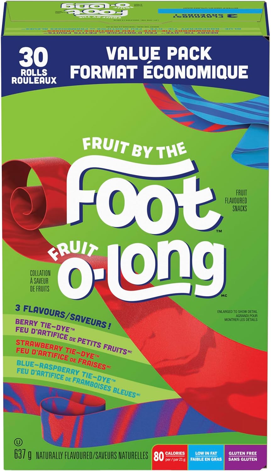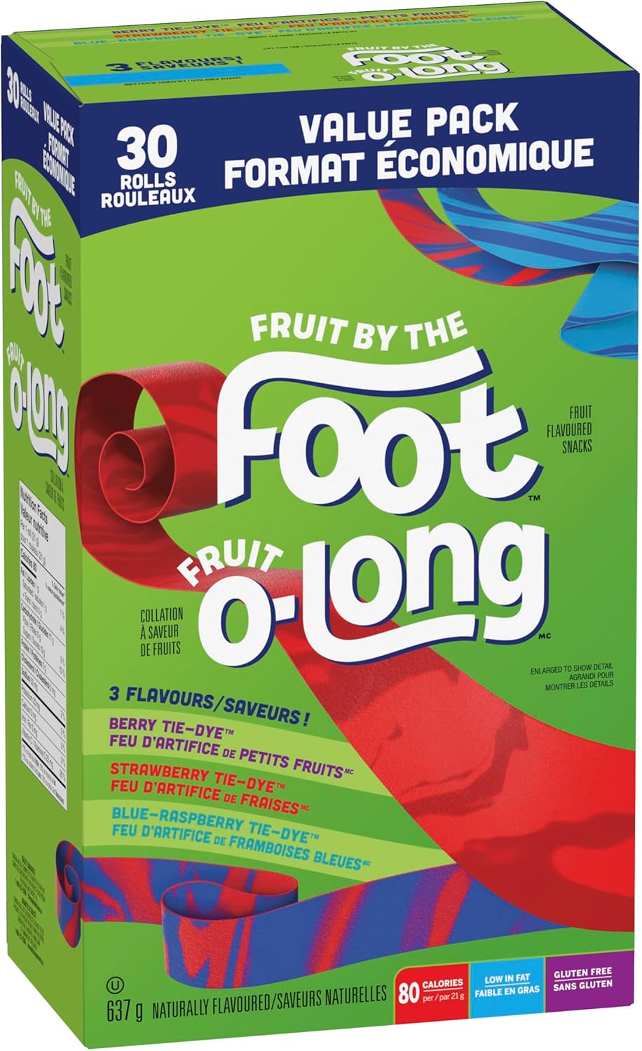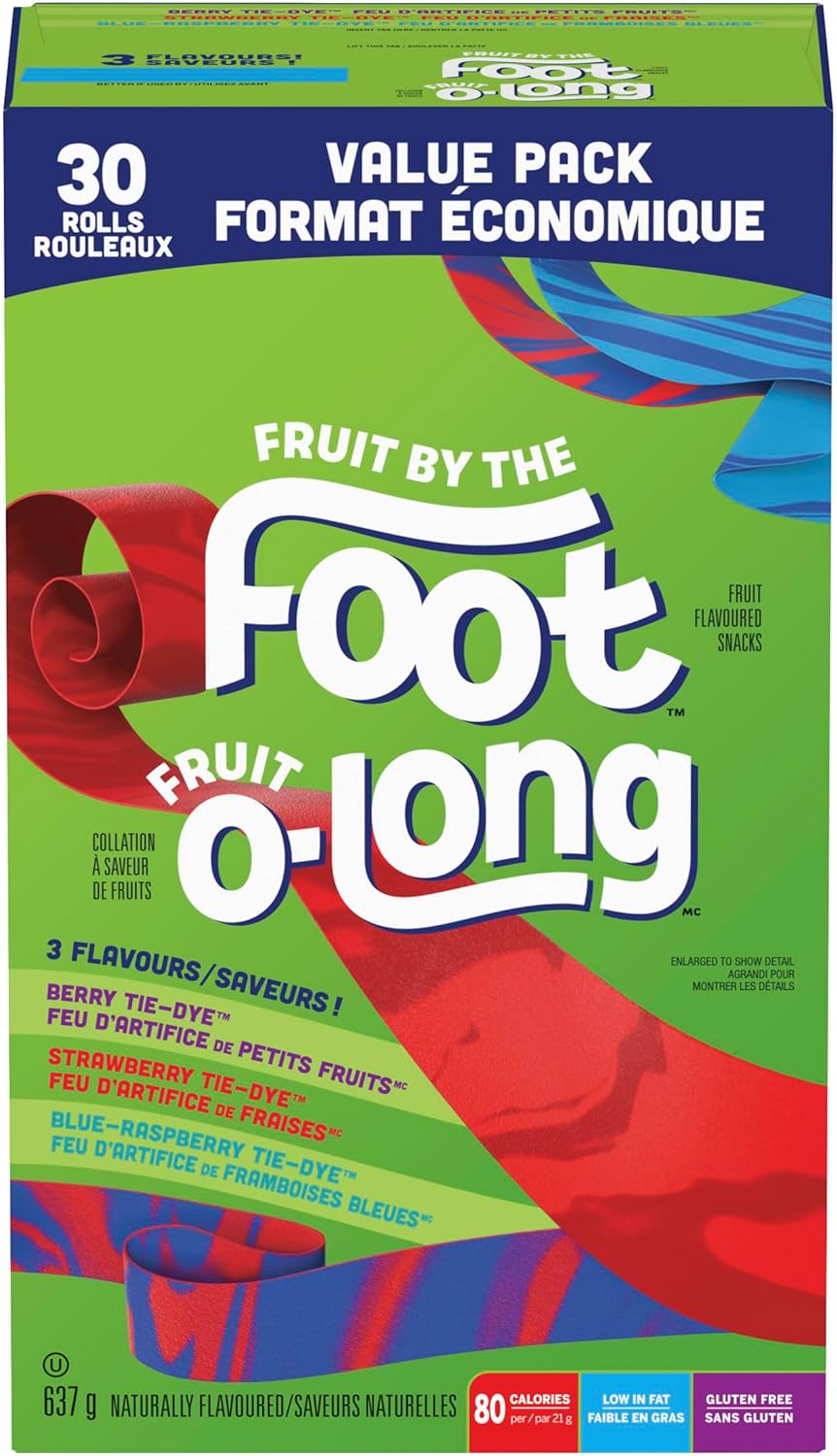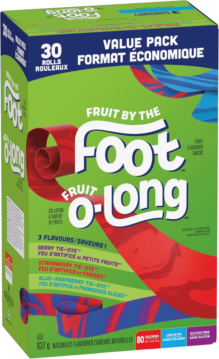 BOX CONTAINS: 637g, 30 total pouches of fruit roll-ups,fruit by the foot kids snacks; assortment may vary