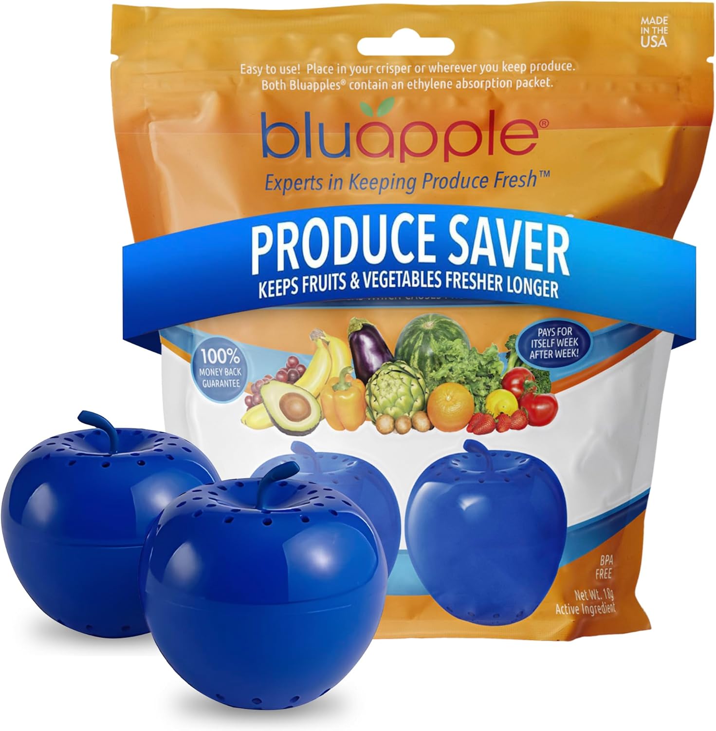 KEEP YOUR FRUITS & VEGGIES FRESH: Meet the Bluapple Produce Saver, the ultimate fruit and vegetable preserver to reduce food waste and enjoy your produce in its best-tasting, nutrient-rich condition! With Bluapple by your side, you can say goodbye to throwing away so much unused produce that has passed its prime.