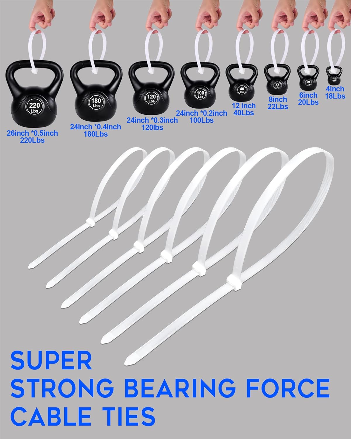 【Cable Ties Loop Tensile Strength】Loop tensile strength 12inch-60lbs.Cable ties tensile strength are suitable for multi-purpose projects on different occasions,Increase the tensile strength by using two or more together in a row,Cost-effective 100-pack of cable zipties for many uses.