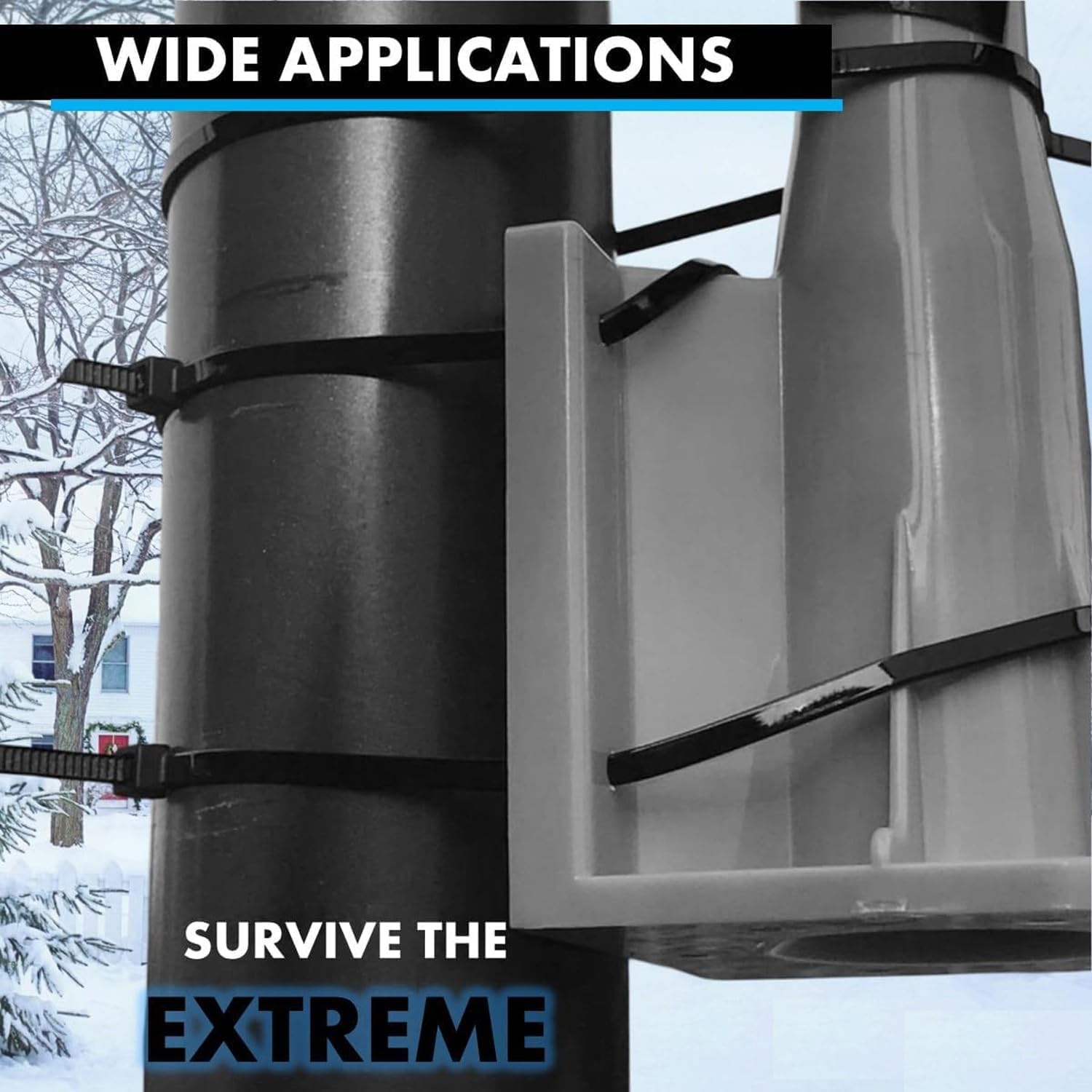 【Multi-purpose Applications】Our cable ties 12 inch Heavy Duty Zip Ties 100Pack. The tensile strength of our large zip tie is 60 pounds, higher than others. It is loved by plumbers, cable workers and construction enthusiasts. It can restore the space to Neat and clean picture. (Ex. Storing garden hose, hanging pedal bikes, repairing cosmetic issues on cars/trucks, securing copper wire, hanging shop signs, connecting fence poles, etc…)