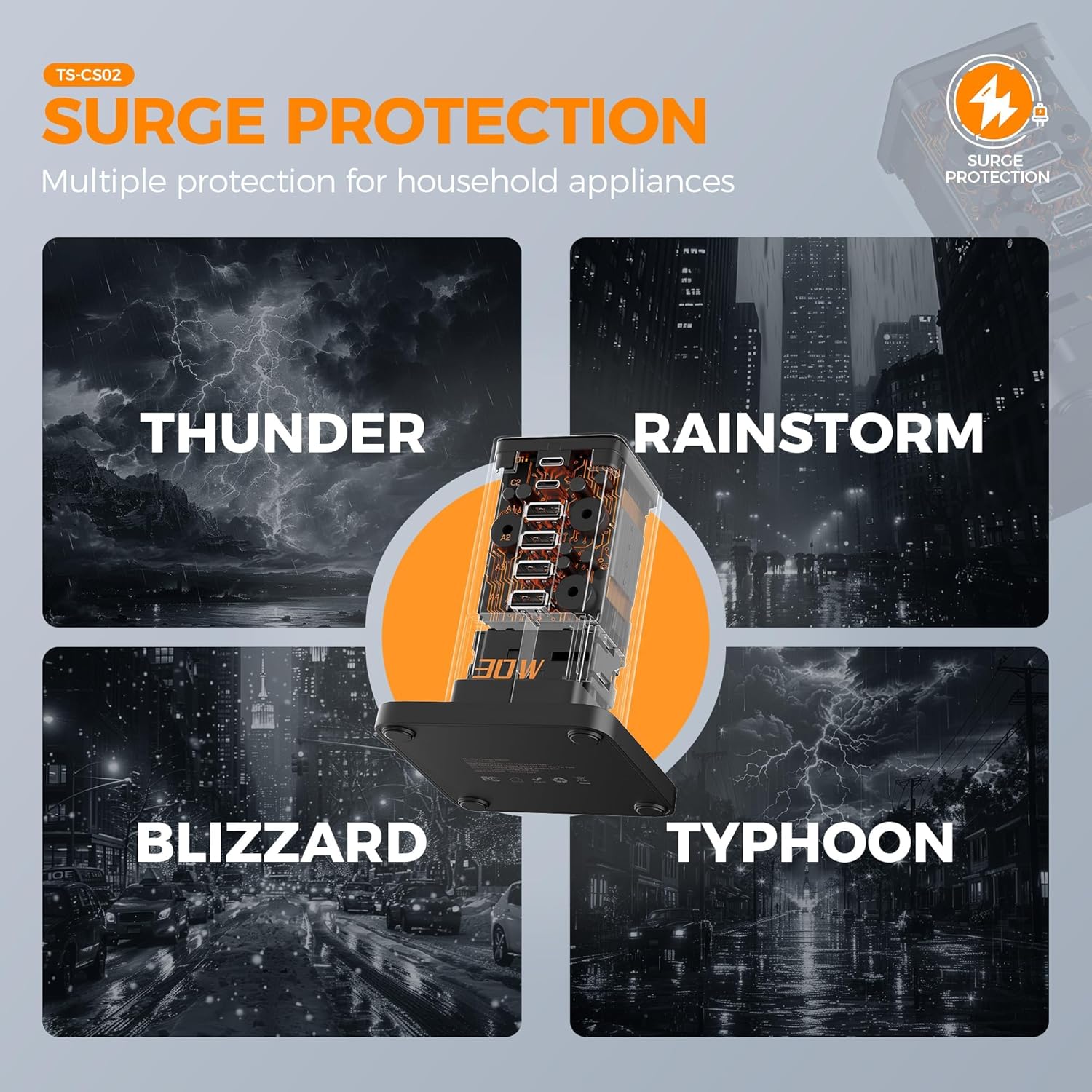 Multi-protection Design: Experience reliable protection for your devices with our surge protector tower power bar , complete with safeguards against over-voltage, over-charge, over-current, and short-circuits. The compact, lightweight Power Station with its USB C charger is perfect for trave