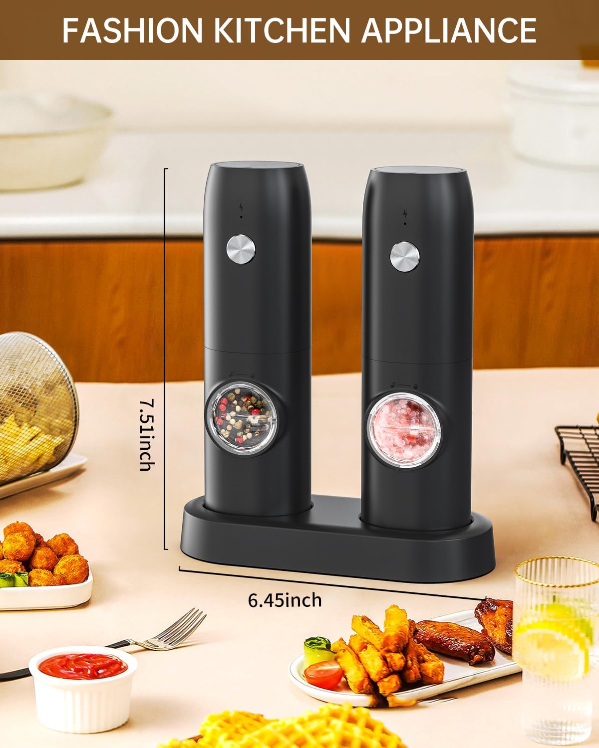 One-Handed Automatic Operation: Grinding the spices automatically by pressing the button. This salt and pepper grinder is more convenient and effort-saving than traditional ones. This grinder is the good helper for kitchens, restaurants, parties and outdoor picnics