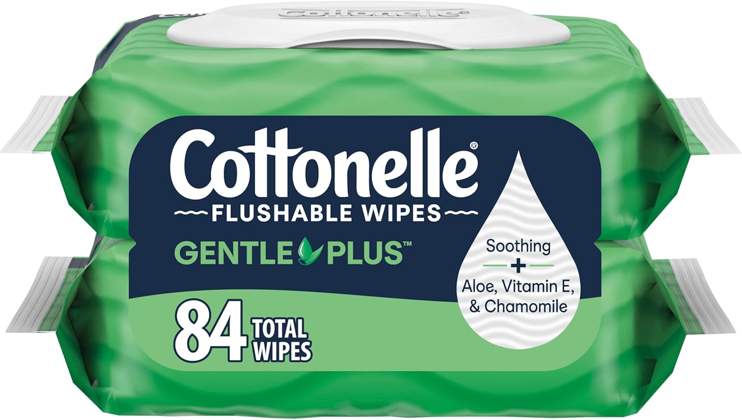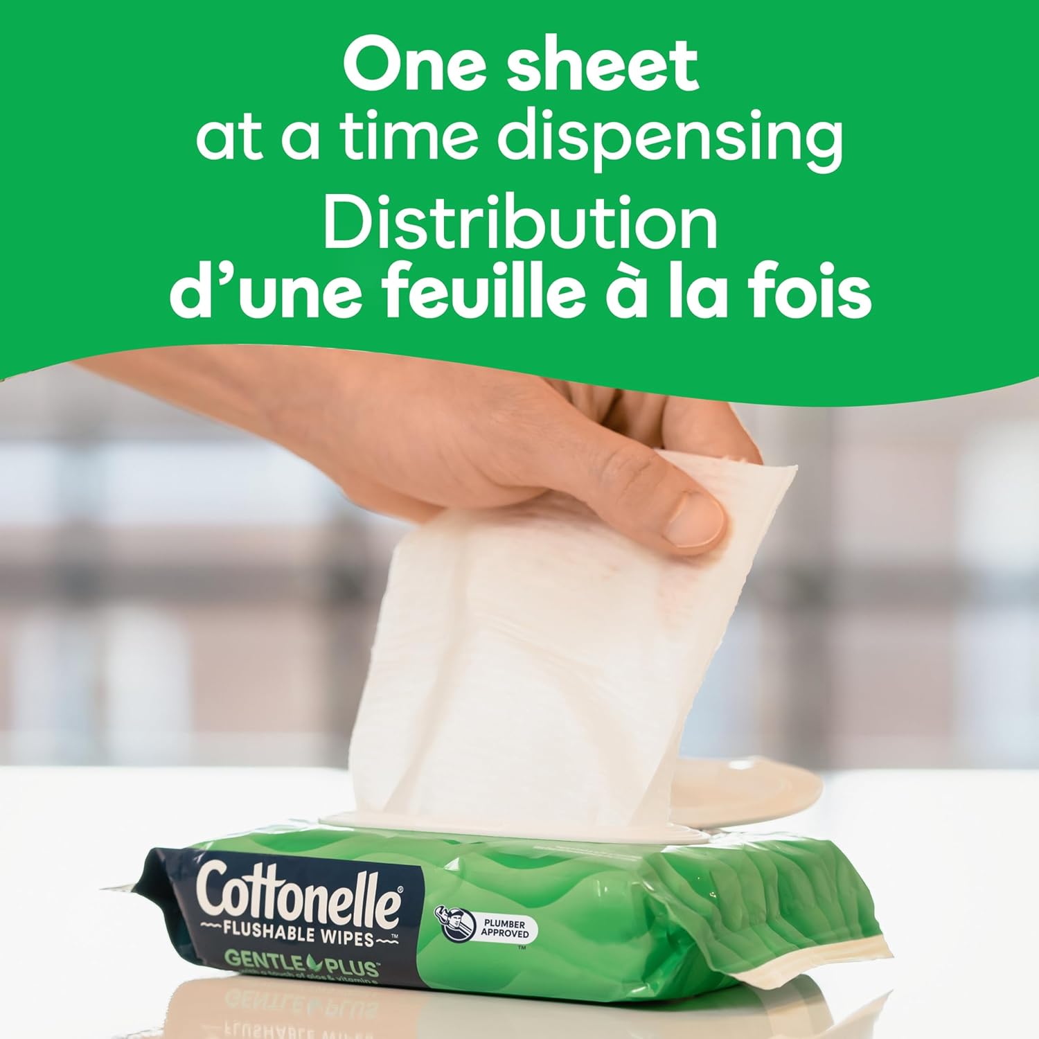 2 FLIP-TOP PACKS: Cottonelle GentlePlus Flushable Wet Wipes with Aloe & Vitamin E, 2 Flip-Top Packs, 42 Wipes per Pack (84 Total Flushable Wipes)