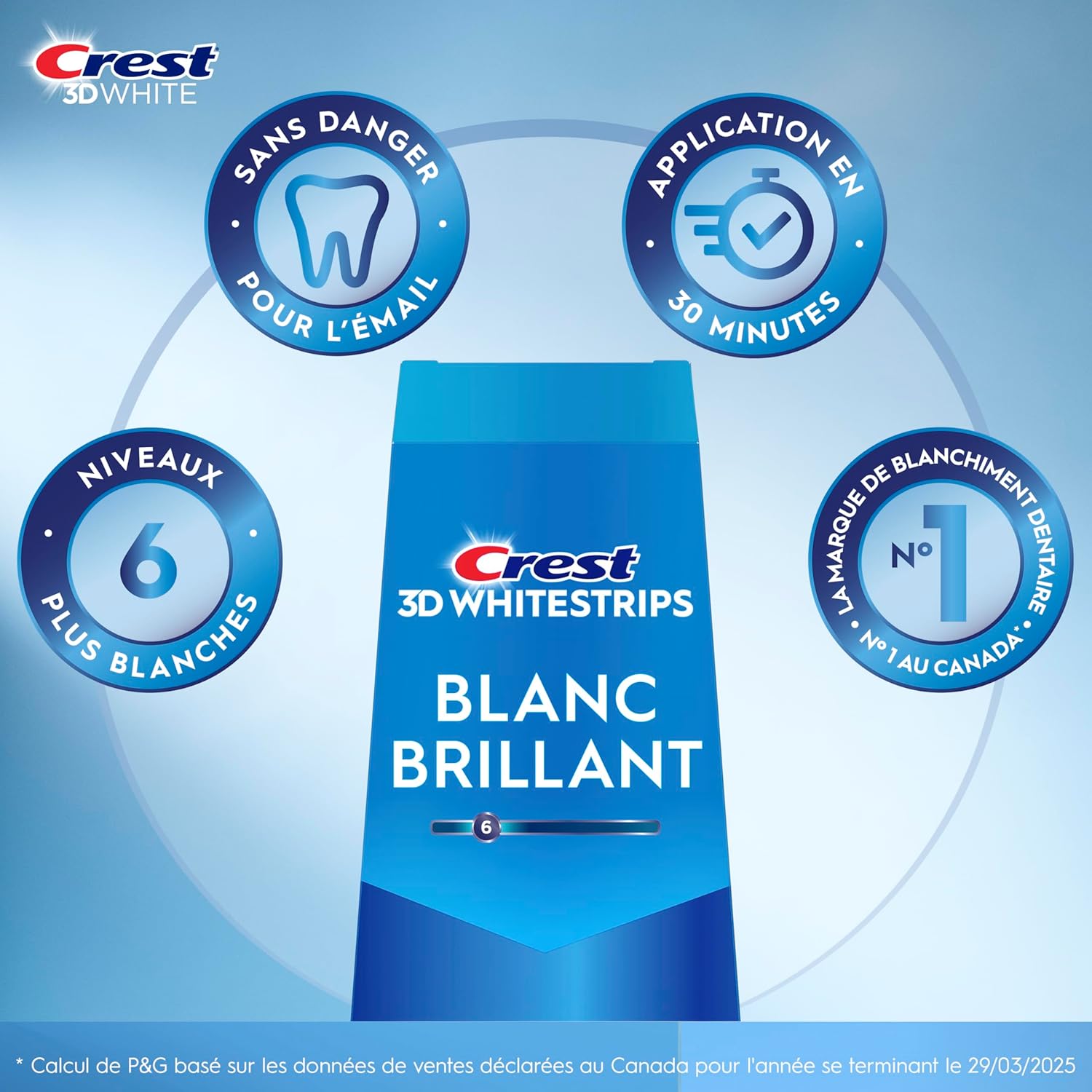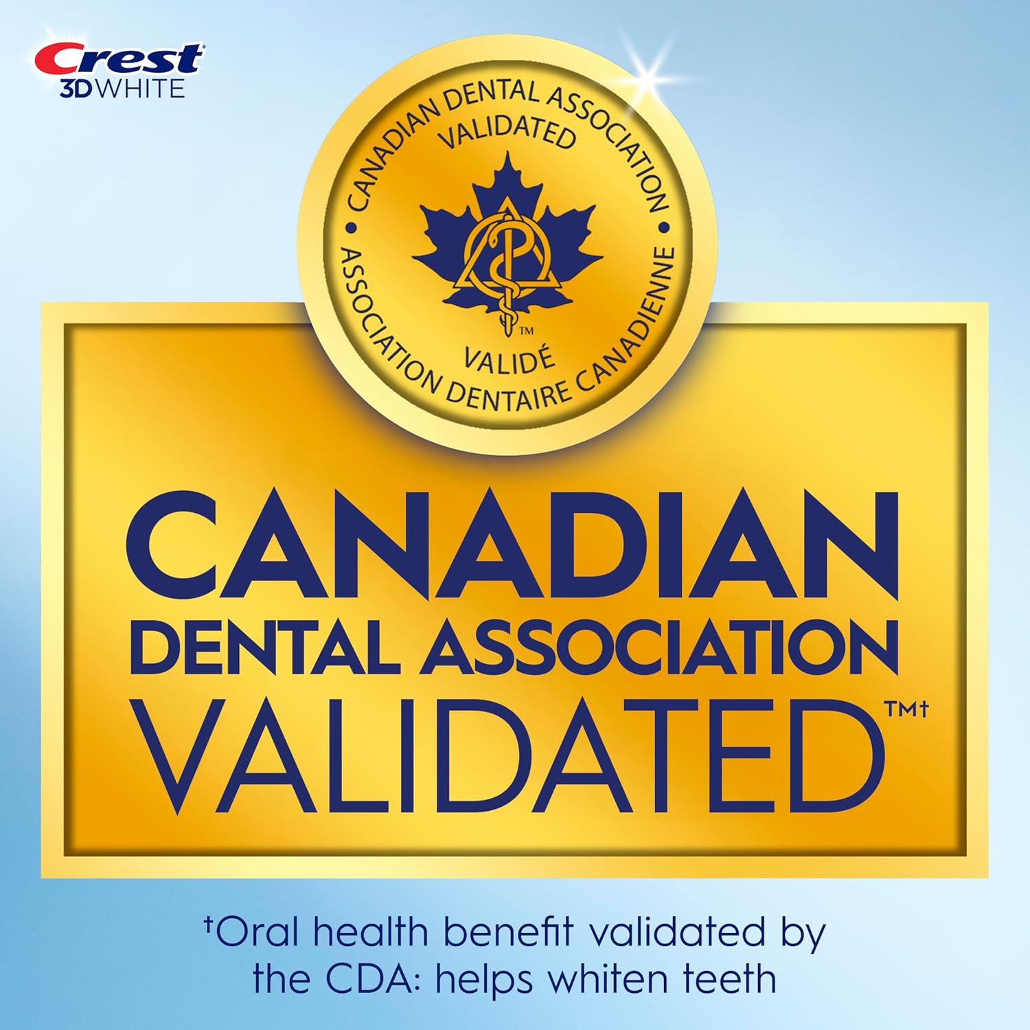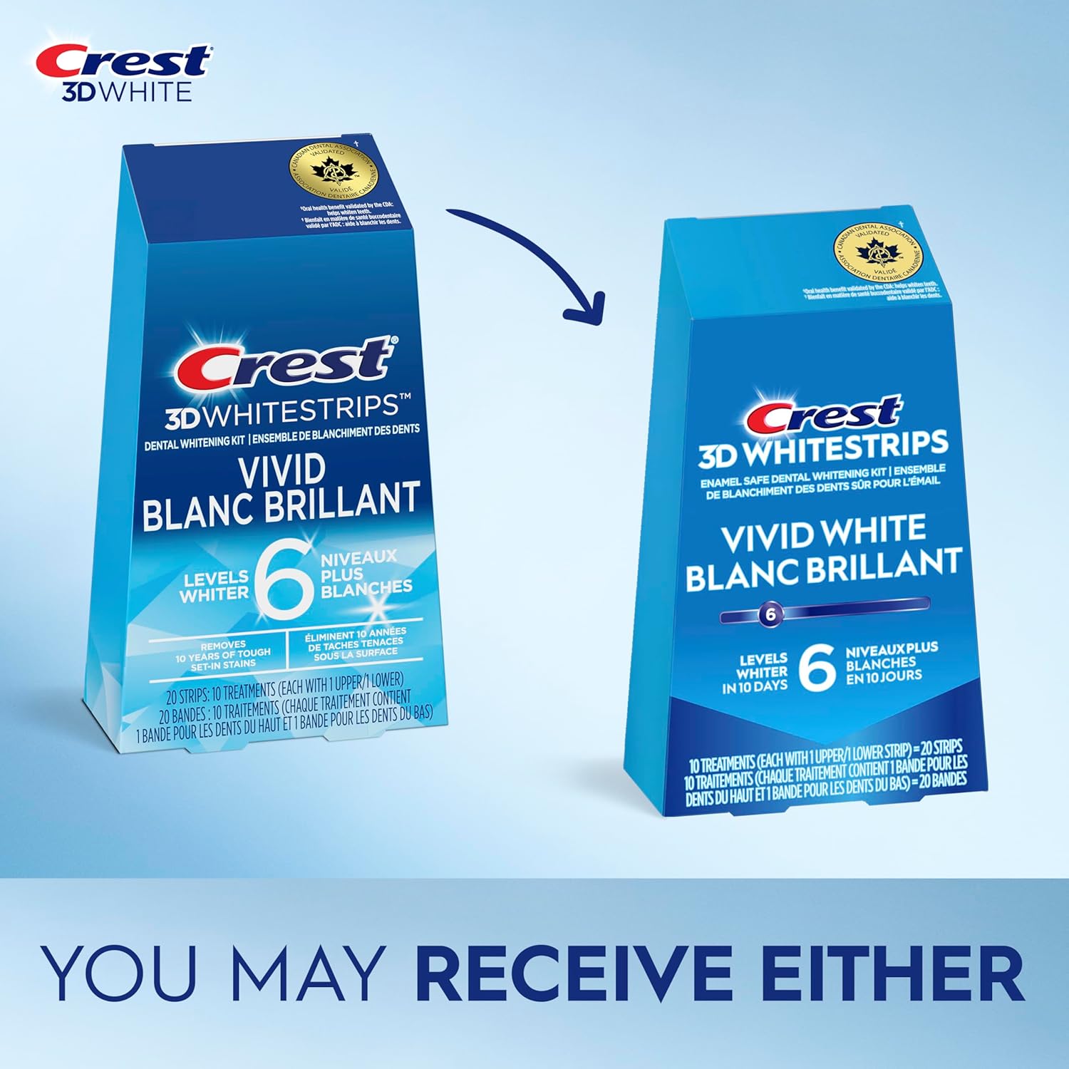 Want to get a whiter smile at home? Choose Crest 3DWhitestrips Vivid White and get a brighter, whiter smile in just 10 days. Made by Canada’s #1 Whitening Brand*, this 30-minute teeth whitening treatment makes it easy to whiten your teeth without leaving the house. It’s been validated by the Canadian Dental Association and uses the same enamel safe teeth whitening ingredient as dentists. Try the Vivid White teeth whitening kit and get 100% noticeably whiter teeth, guaranteed. Plus, the Advanced Seal Technology’s comfortable, no-slip grip keeps strips in place so you can talk and even drink water while whitening your teeth. Simply apply Crest 3DWhitestrips Vivid White for 30 minutes a day for 10 days. This pack includes 20 teeth whitening strips, 10 for your top teeth and 10 for your bottom teeth, to be used over the course of 10 days. *P&G Calculation Based on Canada Reported Sales Data for Year Ending w/o 3/29/2025