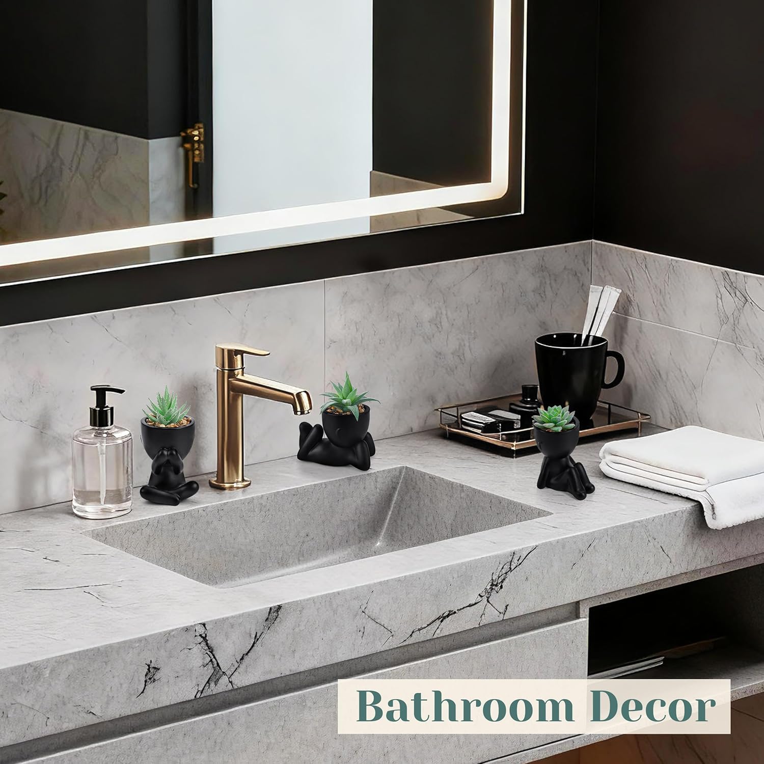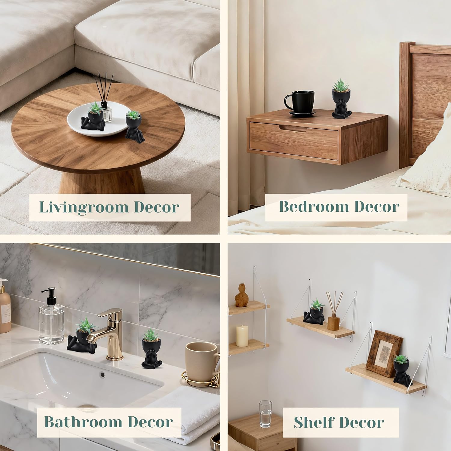 【Unique Fake Plants Design】 These small succulent plants feature 3 unique human-shaped pots with a soft flocked surface for enhanced realism. Their distinctive look adds a playful touch to your shelf decor or bathroom decor ideas, making them a cute addition to any indoor decor