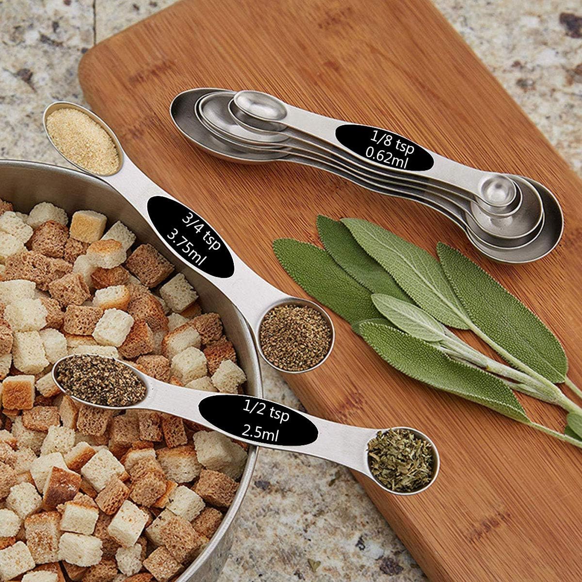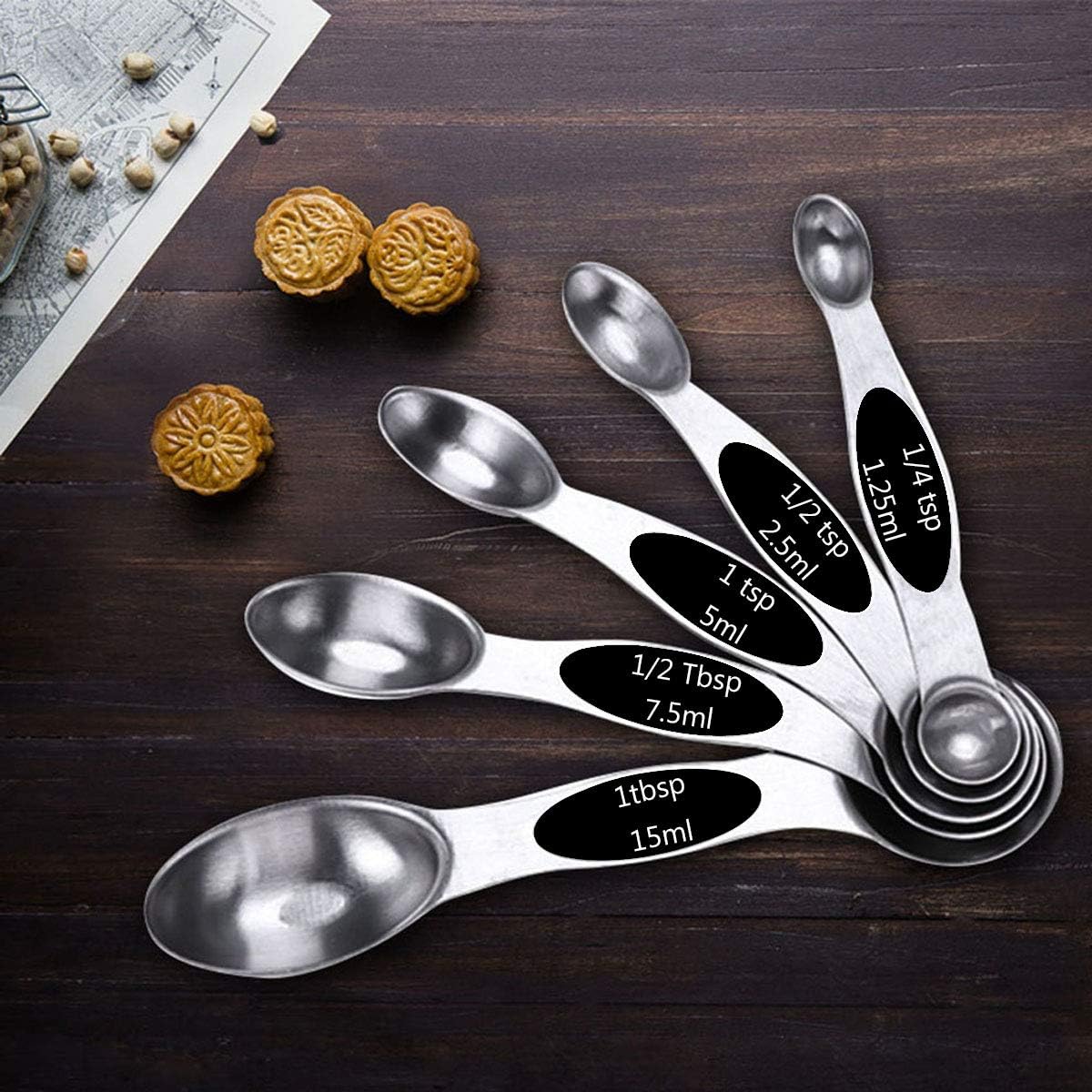 STAINLESS STEEL MEASURING SPOONS – Measuring spoons are made of premium stainless steel which have sturdy construction and brushed finished surface, They are a integrated and very smooth, so no nooks or crannies for dirt to hide, will not rust, bend, or deform. After using the spoons you can easily put it in dishwasher.