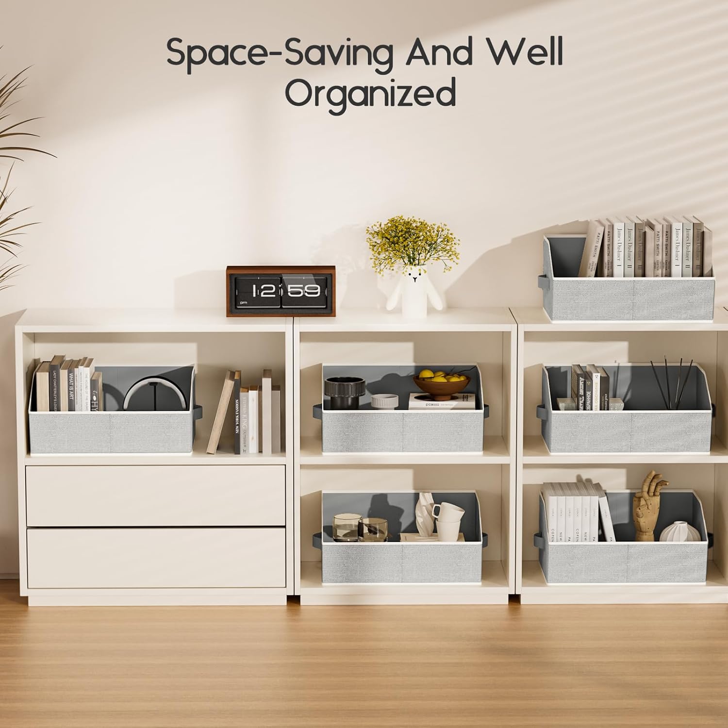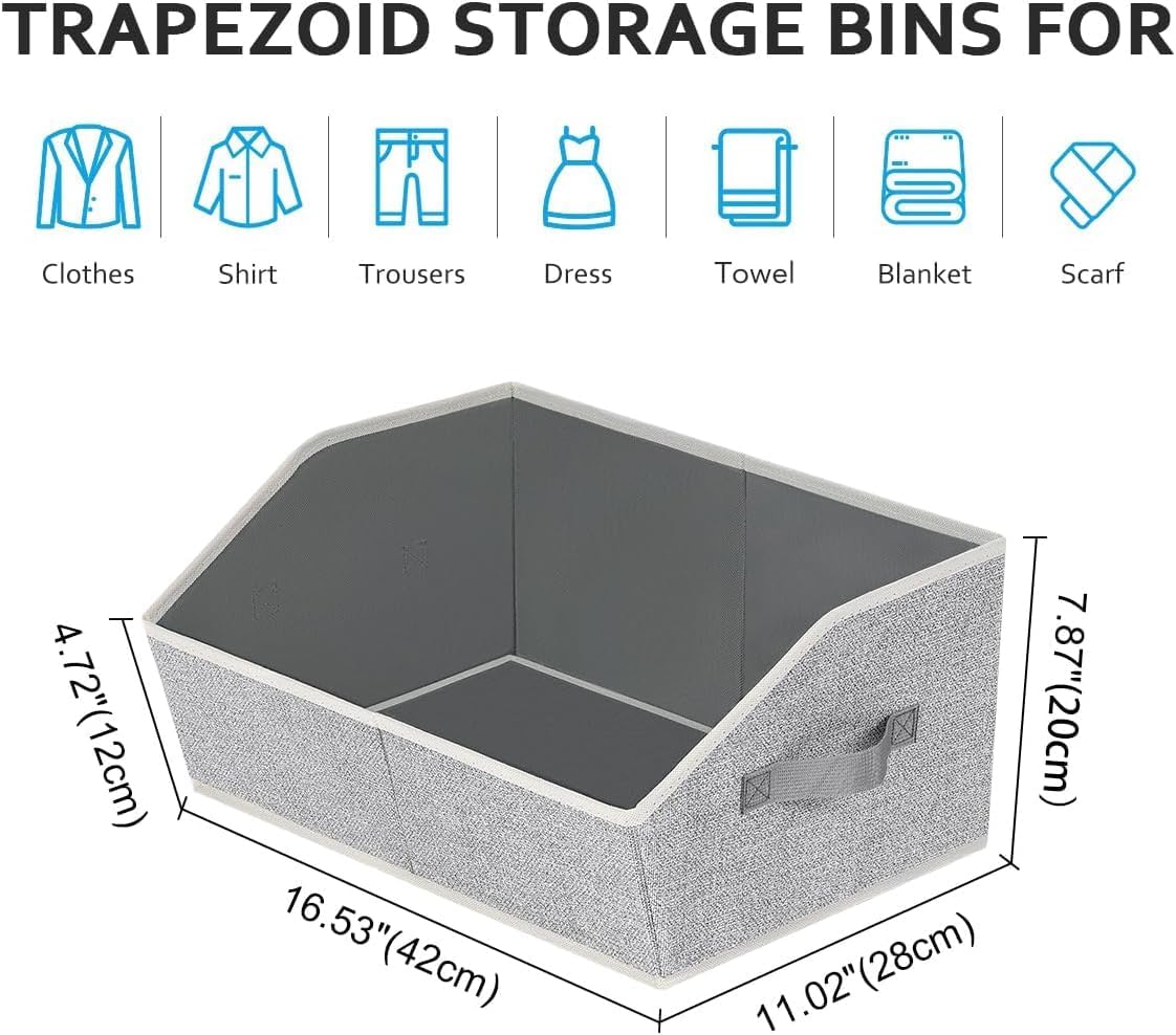 [Fits Every Corner of Your Life]These trapezoid storage bins require no Assembly/Installation. Ready to use immediately, they serve as entryway organizers, TV console storage, closet shelf organizer bins, or general baskets for shelves in any room.