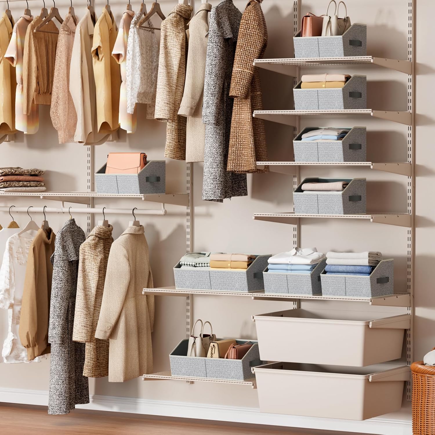 [Modular & Flexible System Solution]Multiple DIMJ closet bins organizer units align side-by-side to create a custom system that maximizes shelf space and enhances closet organizers and storage for a well-organized home.