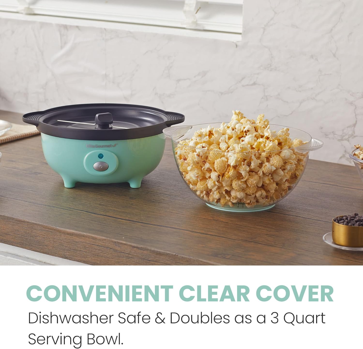 HOT AIR POPCORN TIME: The Elite Gourmet popcorn machine can pop up to 3 quarts of popcorn at once for family and friends, you can enjoy fresh and delicious popcorn right at home.