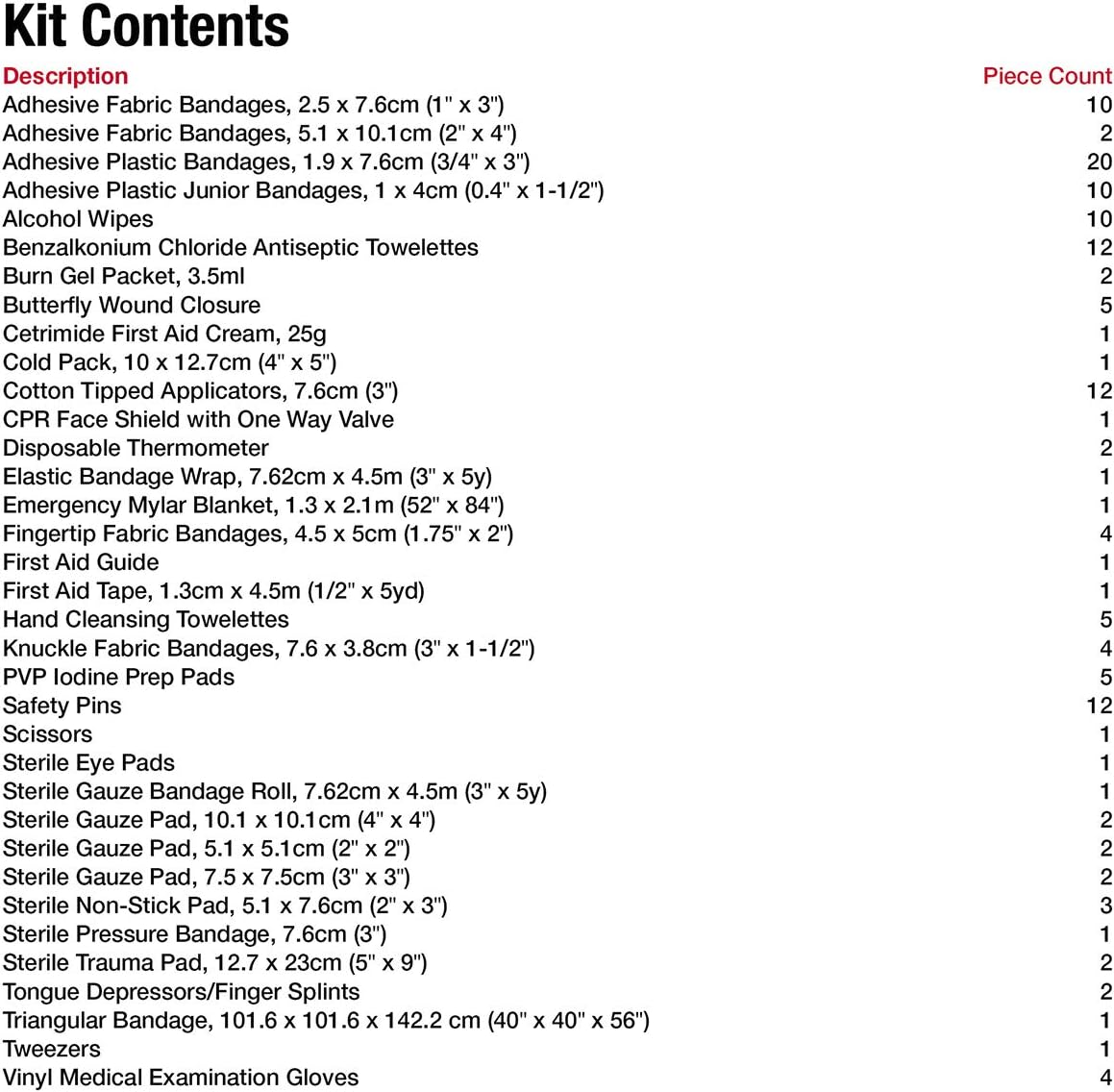 Comprehensive Emergency Kit: Includes 145 essential first aid supplies including adhesive fabric, plastic bandages, antiseptic towelettes, gauze roll and pads, gloves, scissors, tweezers, and other multi-use first aid items