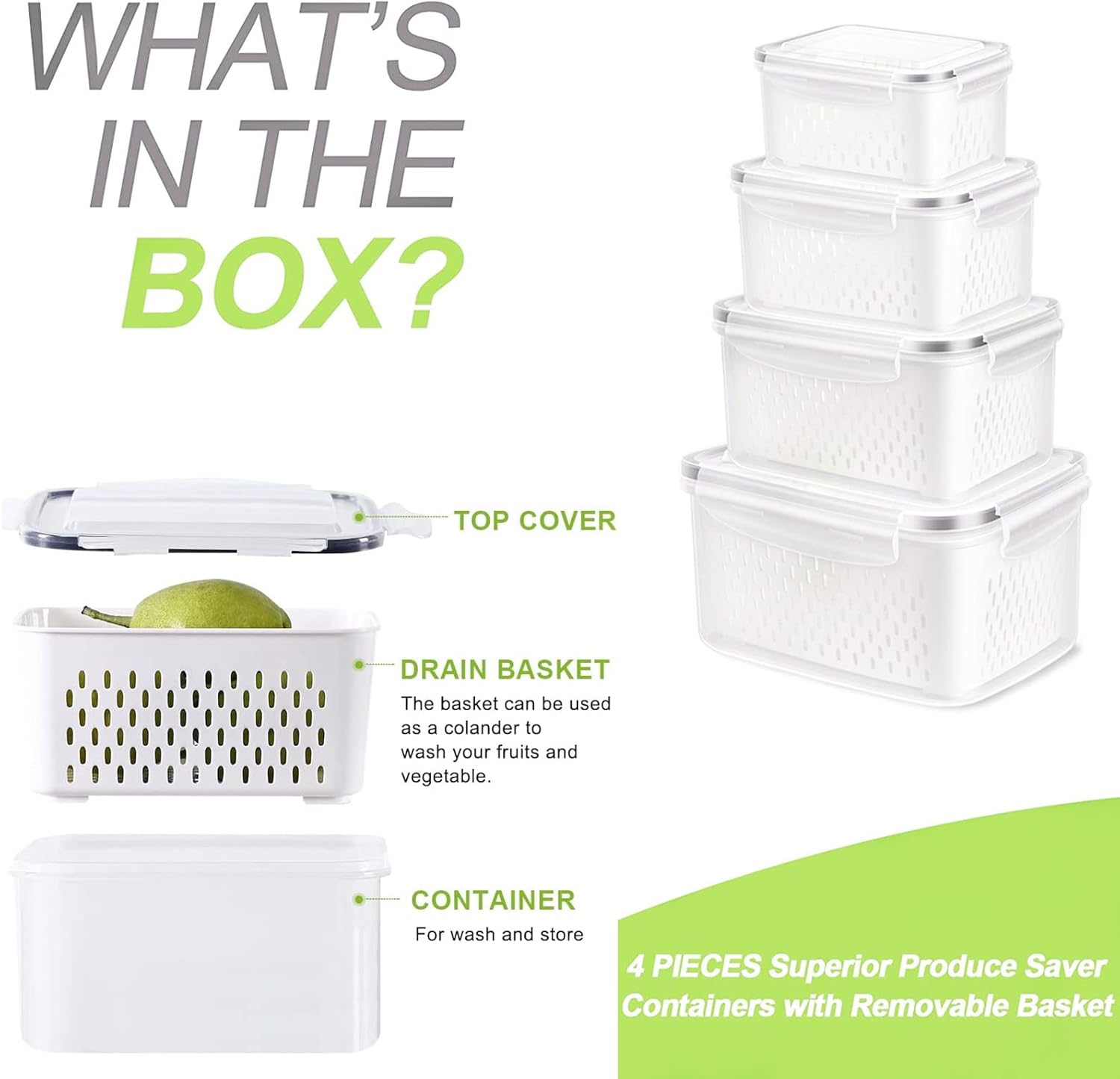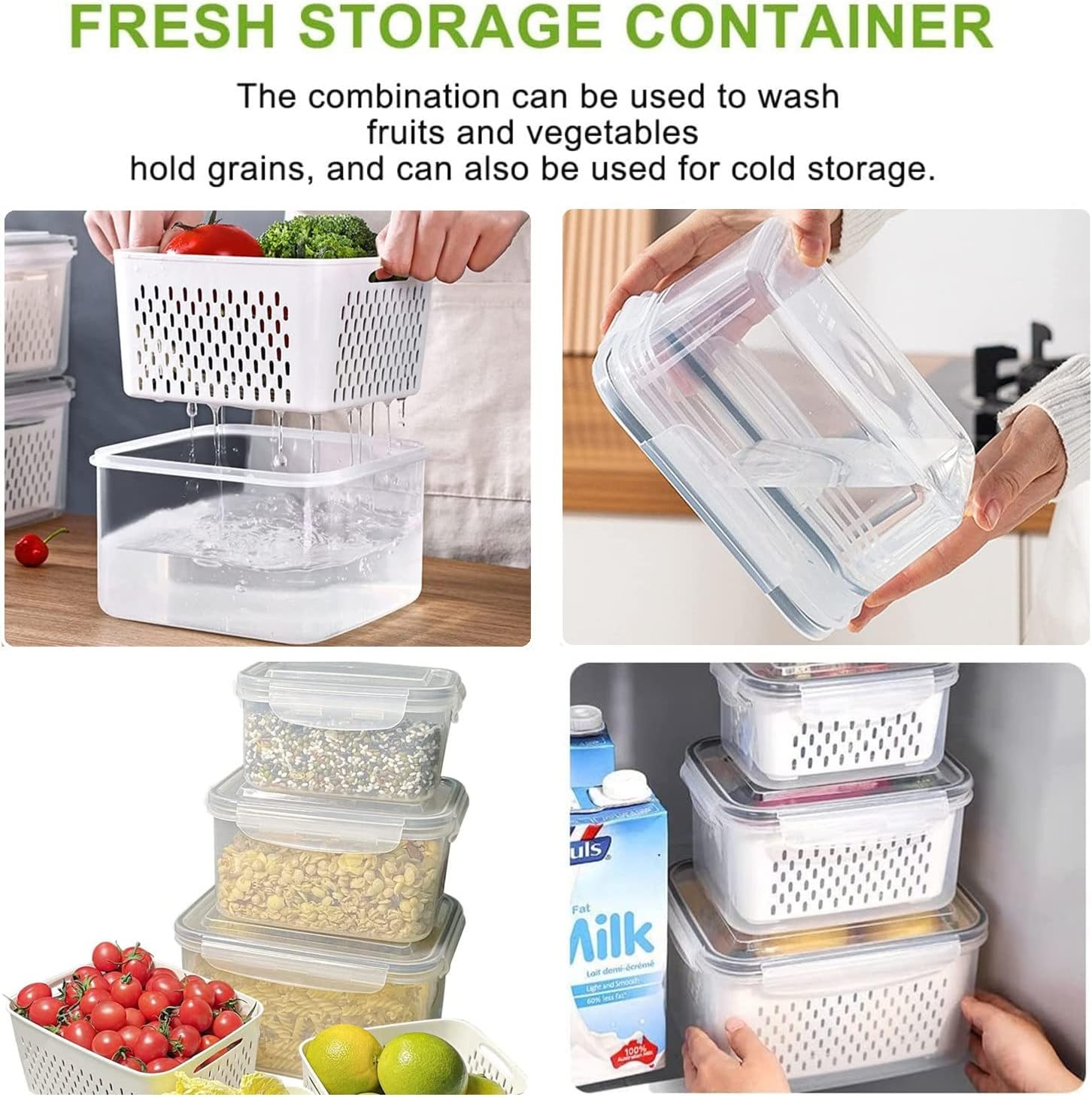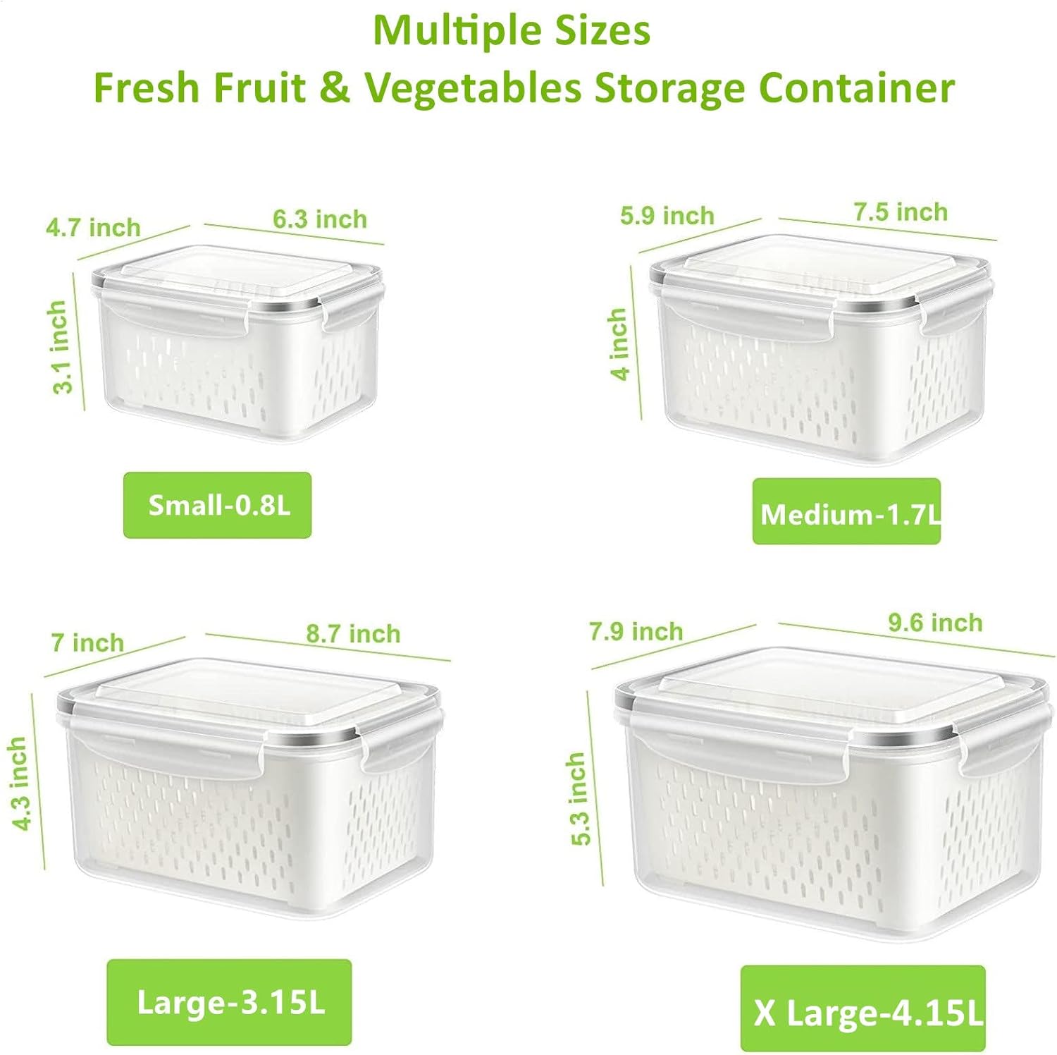๐จ๐จ๐ ๐๐ซ๐จ๐๐ฎ๐๐ ๐๐ญ๐จ๐ซ๐๐ ๐ ๐๐จ๐ง๐ญ๐๐ข๐ง๐๐ซ๐ฌใ- Our fresh fruit container for fridge set includes 4 packs of different capacities- X Large Size 17.5 cups (4.15 L) + Large Size 13.3 cups (3.15 L) + Medium Size 7.2 cups (1.7 L) +small size 3.4 cups (0.8 L). Various capacities can perfectly fit for most fruits veggies produce and other food storage.
