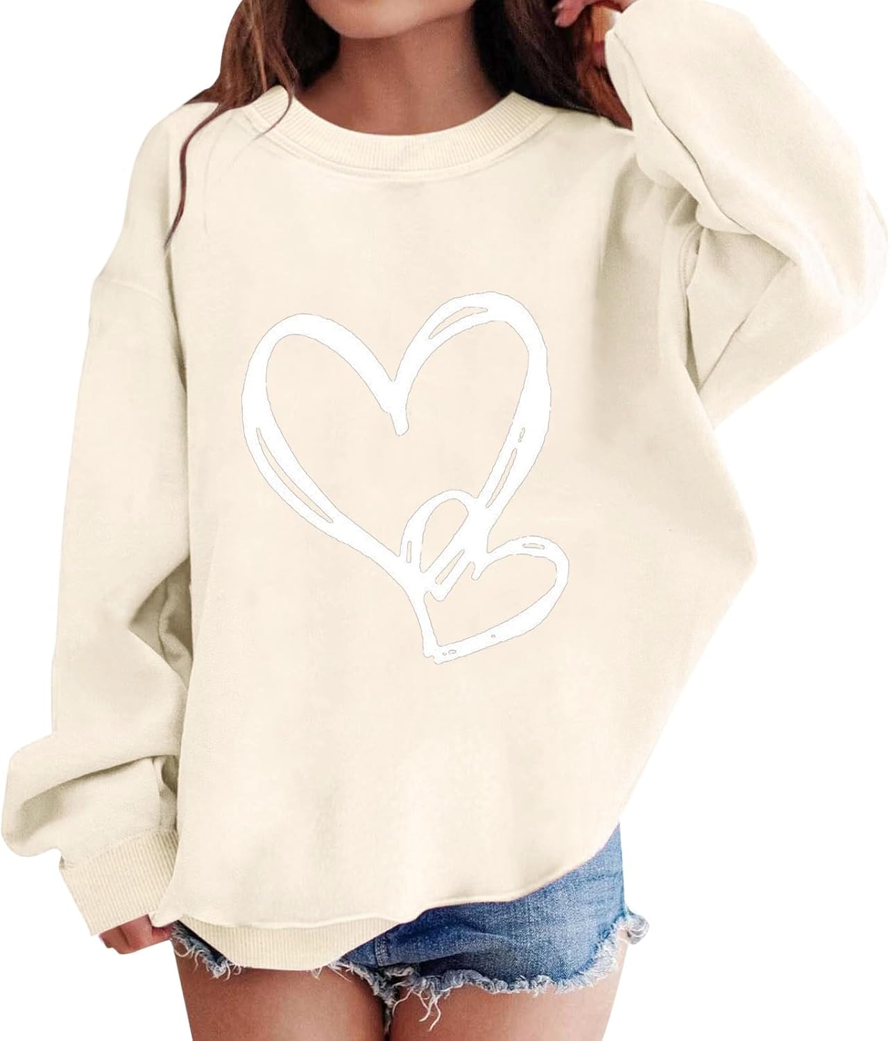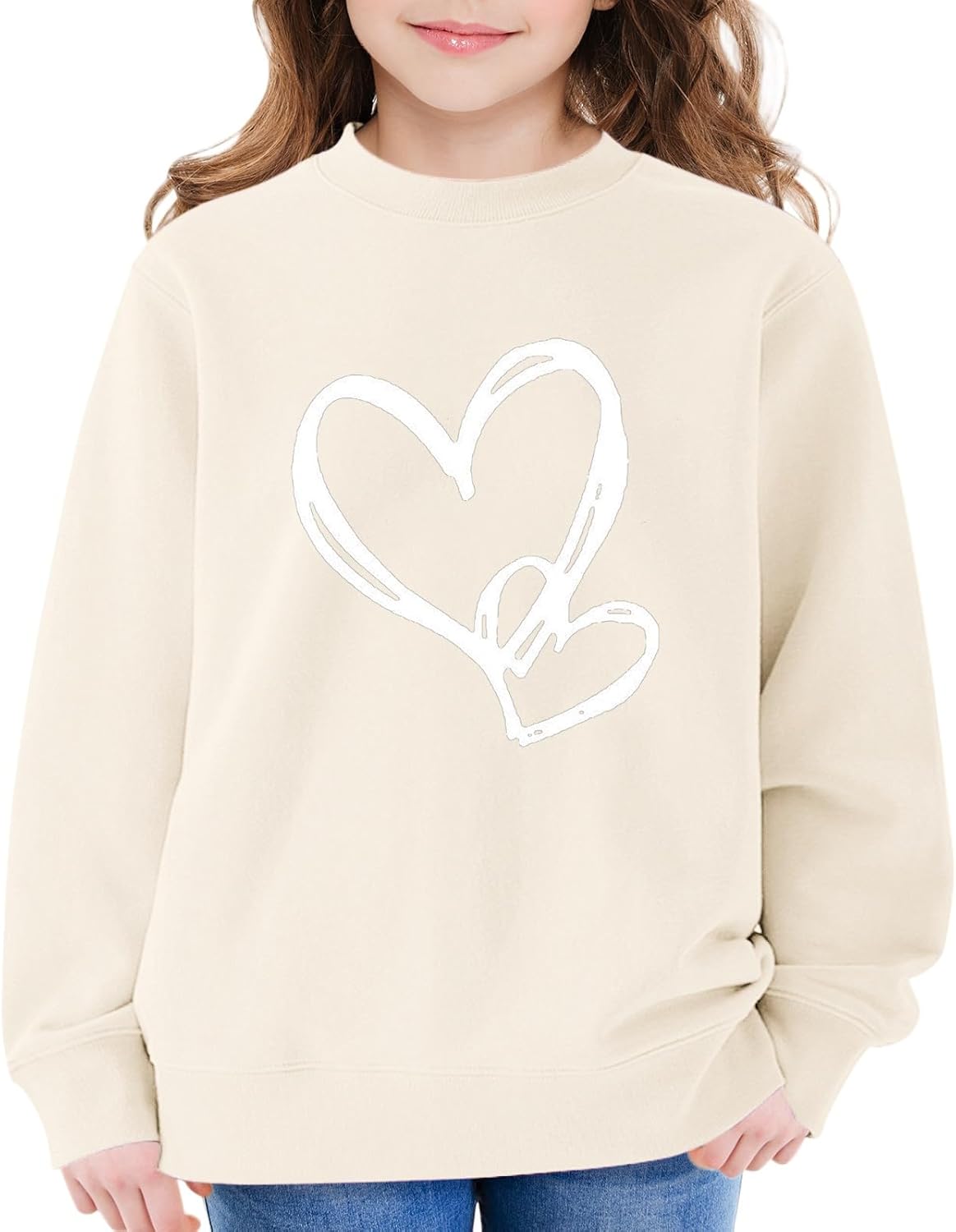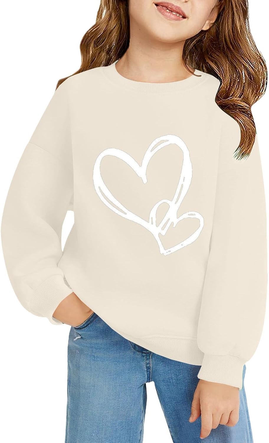 Girls Oversized Sweatshirt Cute Heart Graphic Crewneck Pullover Loose Shirt