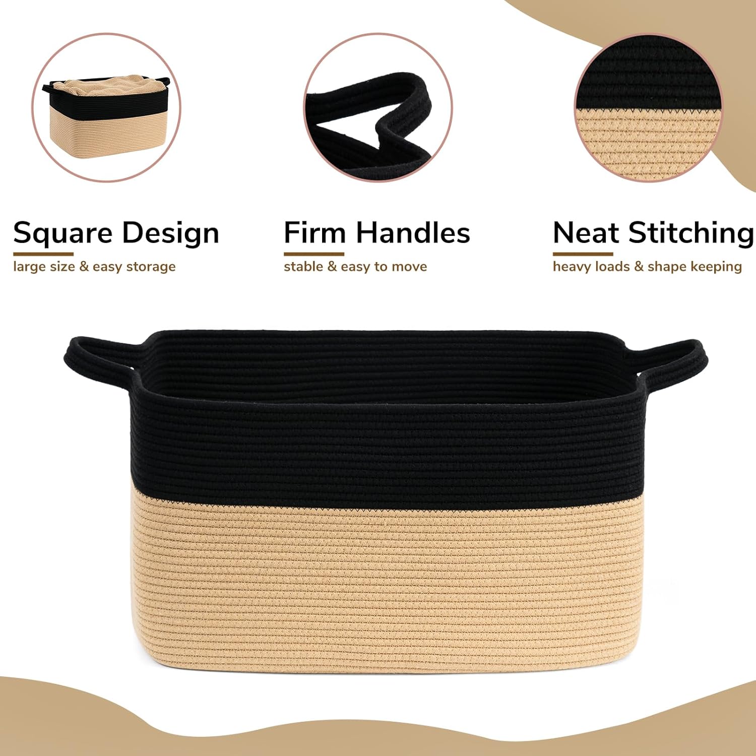 Large Capacity: 21.6″L x 14.9″W x 11.8″H, this large square basket with 65L capacity is perfect for storing throw blankets, pillow, clothes, towels stuffed animals and more.