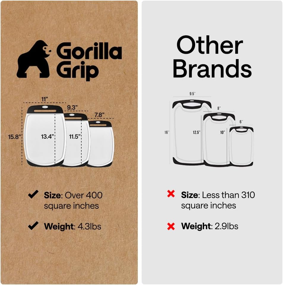 GORILLA GRIP Durable Cutting Board Set of 3, Multi…