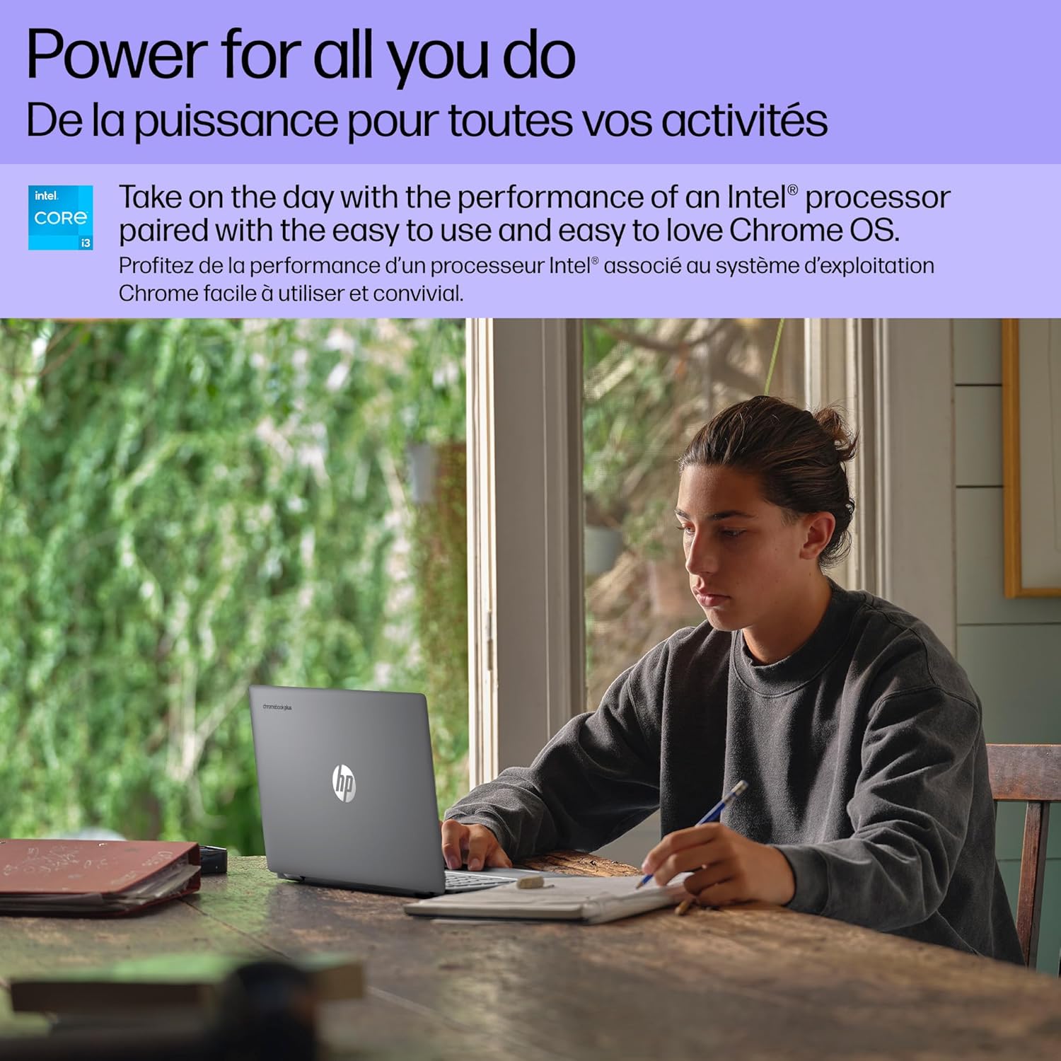 POWERFUL PERFORMANCE: The HP Chromebook Plus 14 inch is equipped with an Intel Core i3-N305 processor, delivering the performance and graphics you need to connect, learn, and play anywhere. With 8 GB LPDDR5 memory and 128 GB UFS storage, you can experience speedy and responsive performance with faster file transfers and application load
