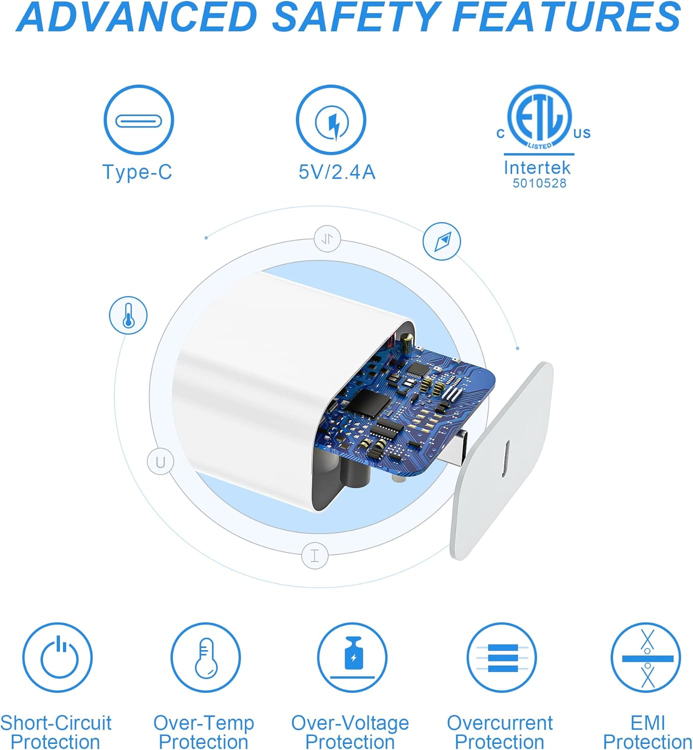 USB Wall Charger has built-in multiple protection systems to avoid from over-voltage, over-charge, over-heat, etc. The advanced chip automatically matches the current required by Apple devices to charge your devices fast, safely and stably.