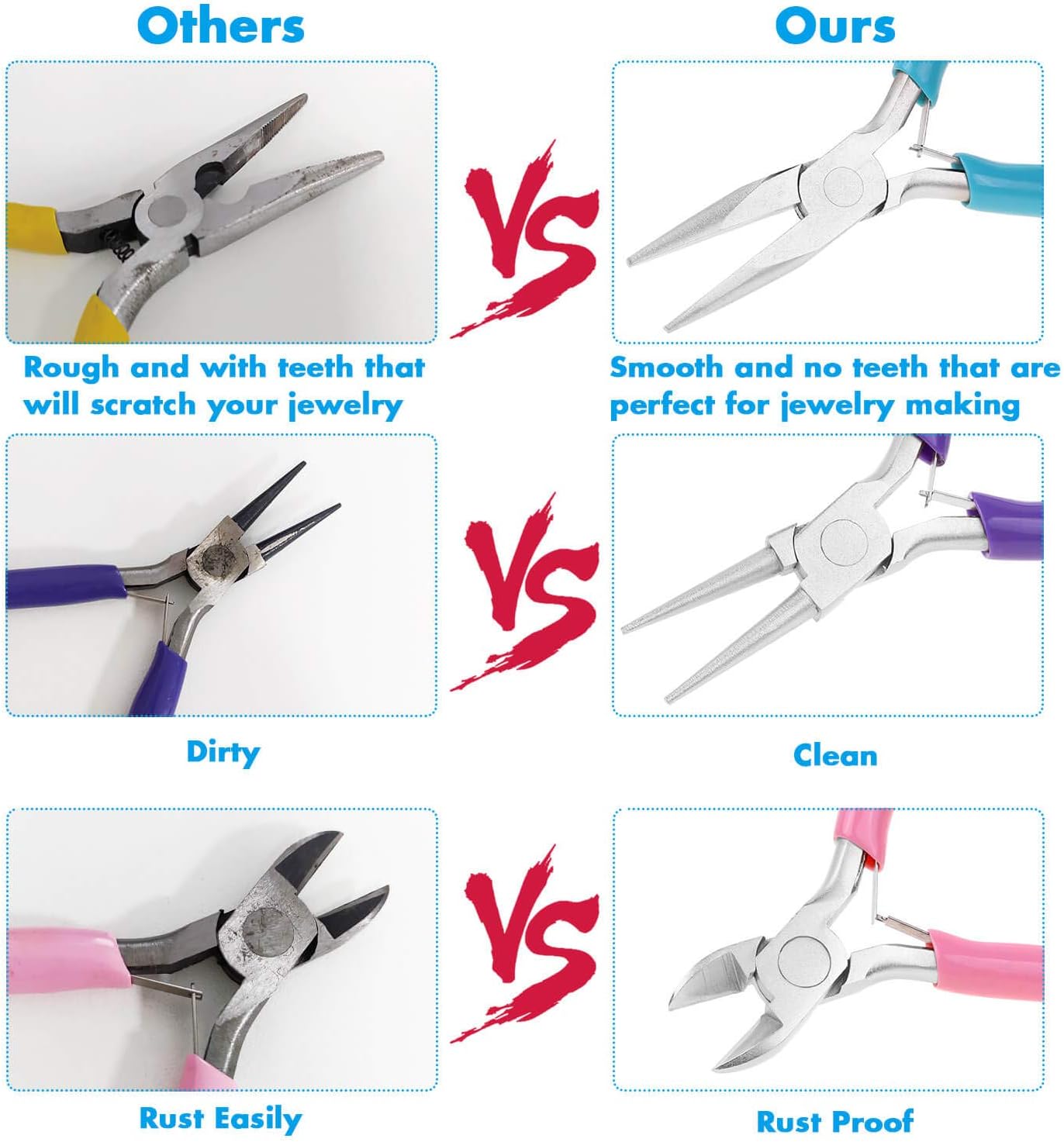 【High Quality Jewelry Making Tools】The jewelry making pliers are made of high quality steel that are sturdy and rust proof for long time use. The jewelry plier with smooth polished surface that are designed for jewelry making and repair. no worry about scratch or leave marks on your jewelry