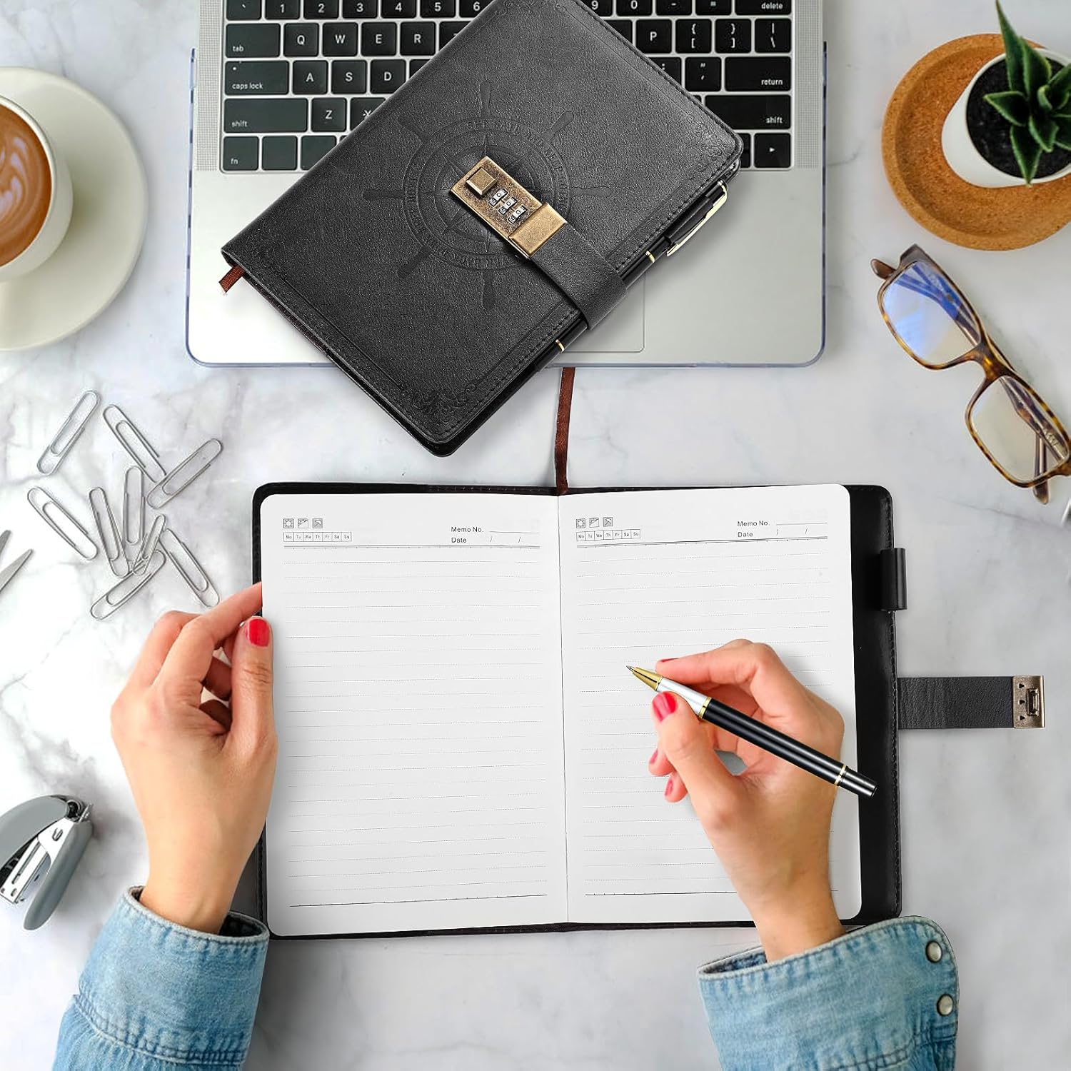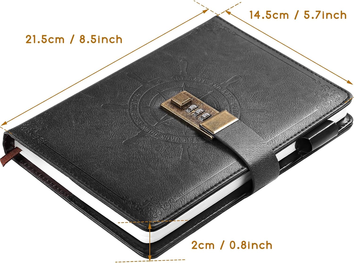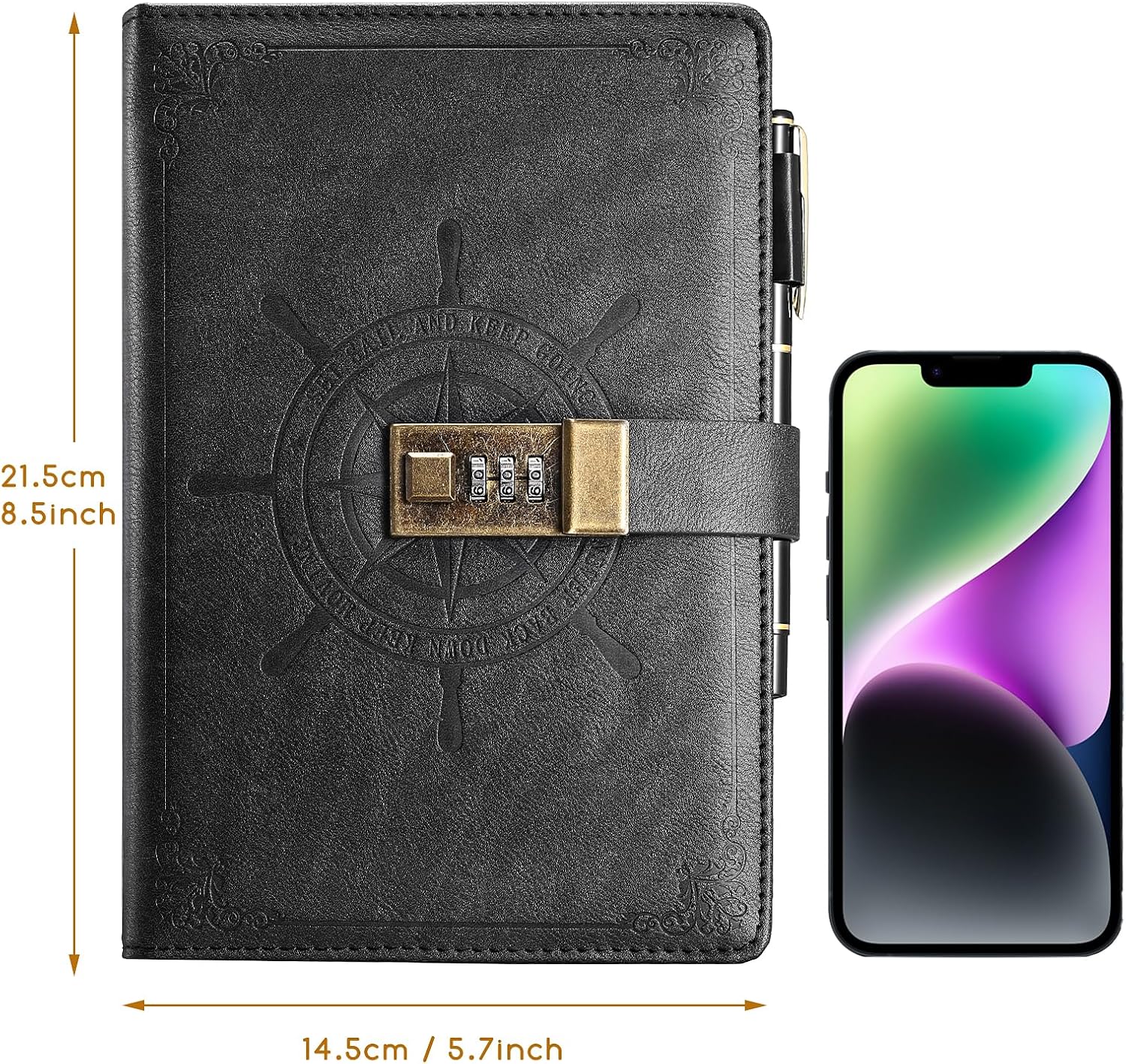 VERSATILE DAILY ORGANIZER: Measuring 8.5 x 5.7 inches (A5 size), this locking notebook fits easily into briefcases or backpacks. It serves perfectly as a travel journal, password keeper, gratitude log, or executive planner—an ideal gift for students, professionals, and writers.