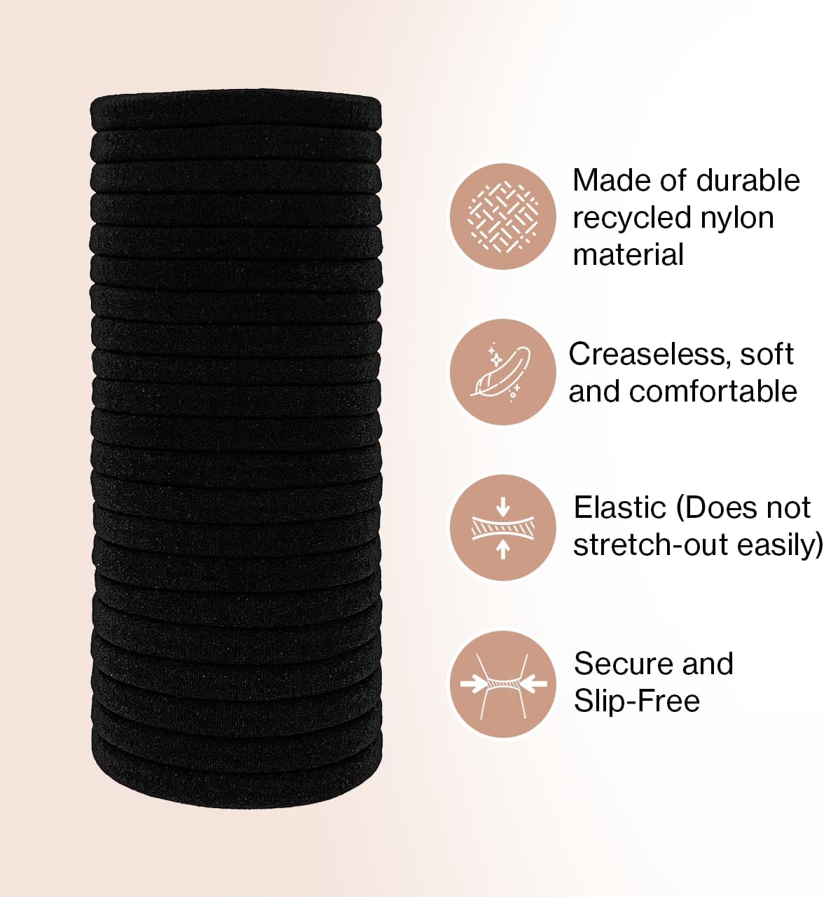 SUSTAINABLE STYLE ESSENTIAL: Consciously created using recycled materials, these nylon elastics help support eco-friendly styling. They provide reliable hold while reducing waste. Durable and lightweight, they are designed for repeated everyday use. Enjoy dependable styling performance while making a small step toward more responsible hair accessories.