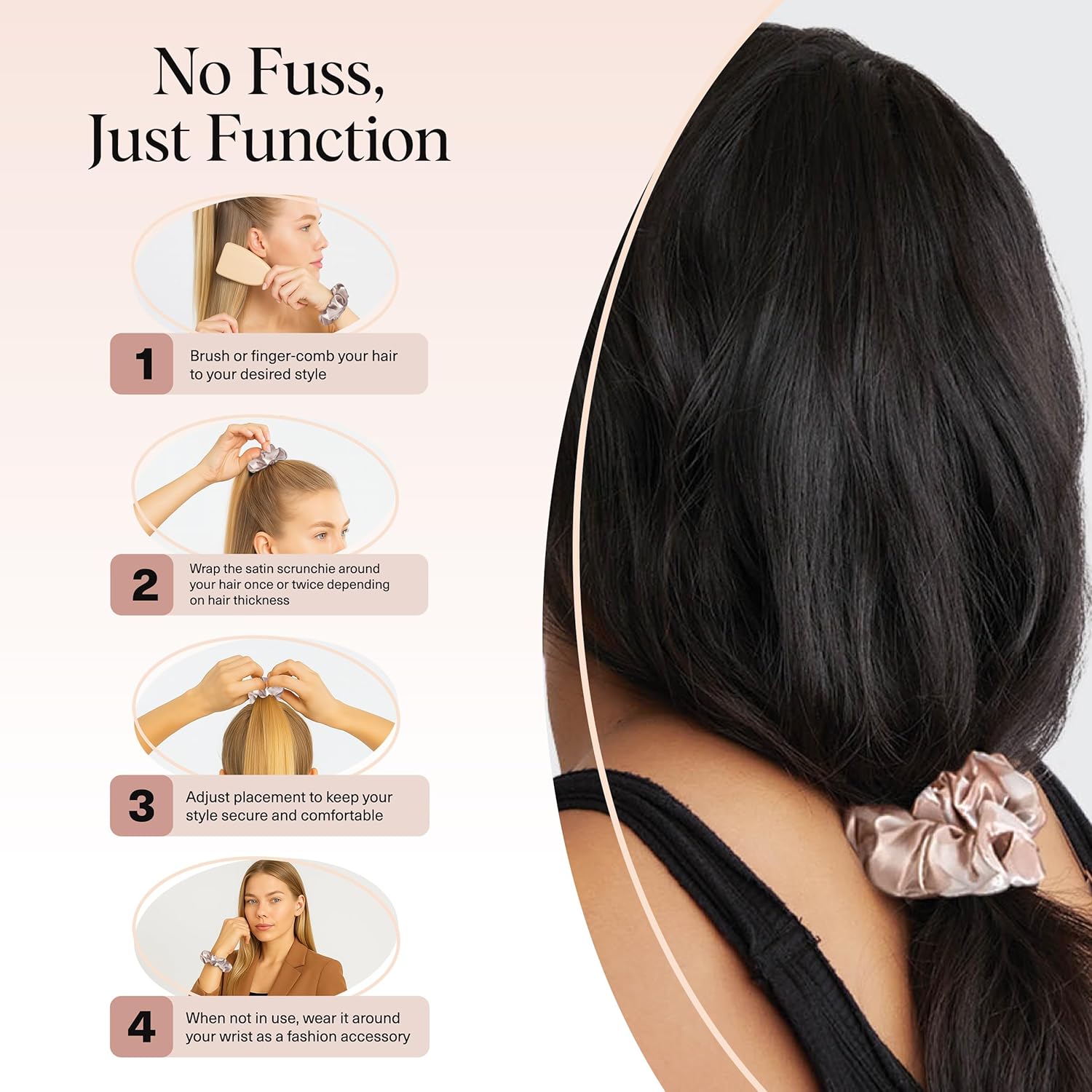 YOUR NEW FAVORITE ACCESSORY: These satin scrunchies are versatile enough for all-day wear and nighttime protection, making them true multitaskers in your collection of hair accessories. Use them as ponytail holders for a sleek, polished look, or as a gentle satin hair tie for overnight styling to keep your strands smooth and frizz-free. Thoughtfully designed to be fashionable and functional, they’re a must-have addition to your daily hair care essentials.