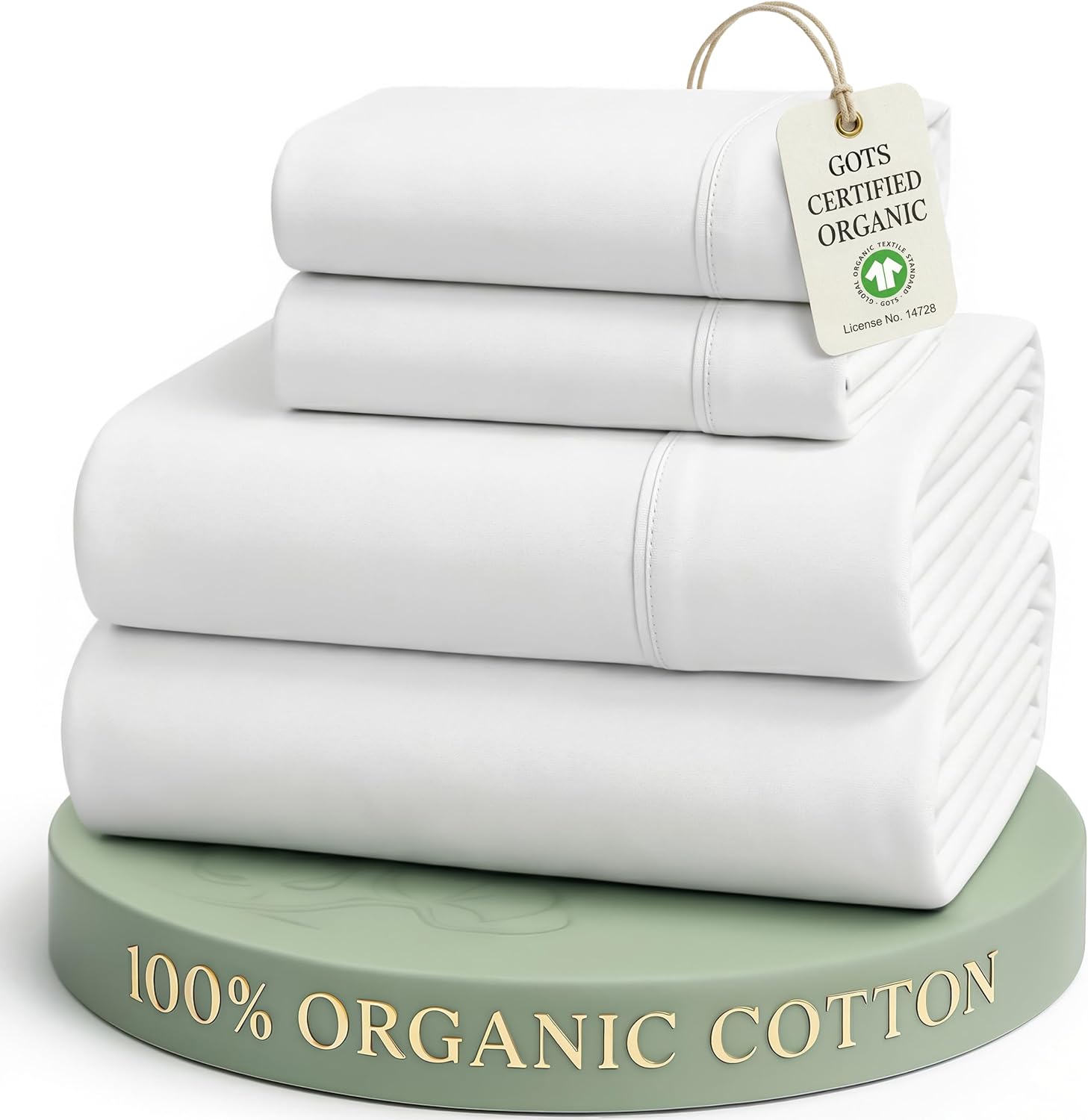 100% Organic Cotton – Naturally Soft with Hotel-Level Comfort: Crafted from GOTS-certified, 100% organic cotton, this queen sheet set delivers breathable, lightweight comfort that keeps you cool and cozy all night. The 4-piece set includes 1 flat sheet (90″ x 102″), 1 fitted sheet (60″ x 80″) with 15-inch deep pockets, and 2 standard pillowcases (20″ x 30″) — the perfect blend of softness and sustainability.