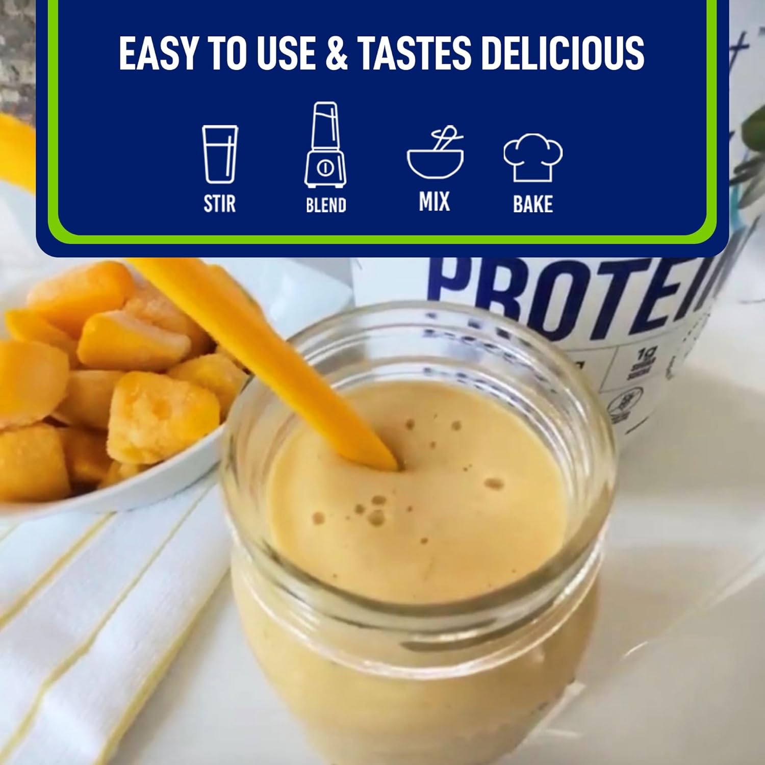 CLEAN SOURCE: Made with certified organic plant proteins including organic pea, organic rice powder, organic chia seed powder, organic flax seed powder, and organic hemp protein powder. Vegan, kosher, non-gmo, and free of artificial colours and flavours, preservatives, soy, dairy, gluten, and more.