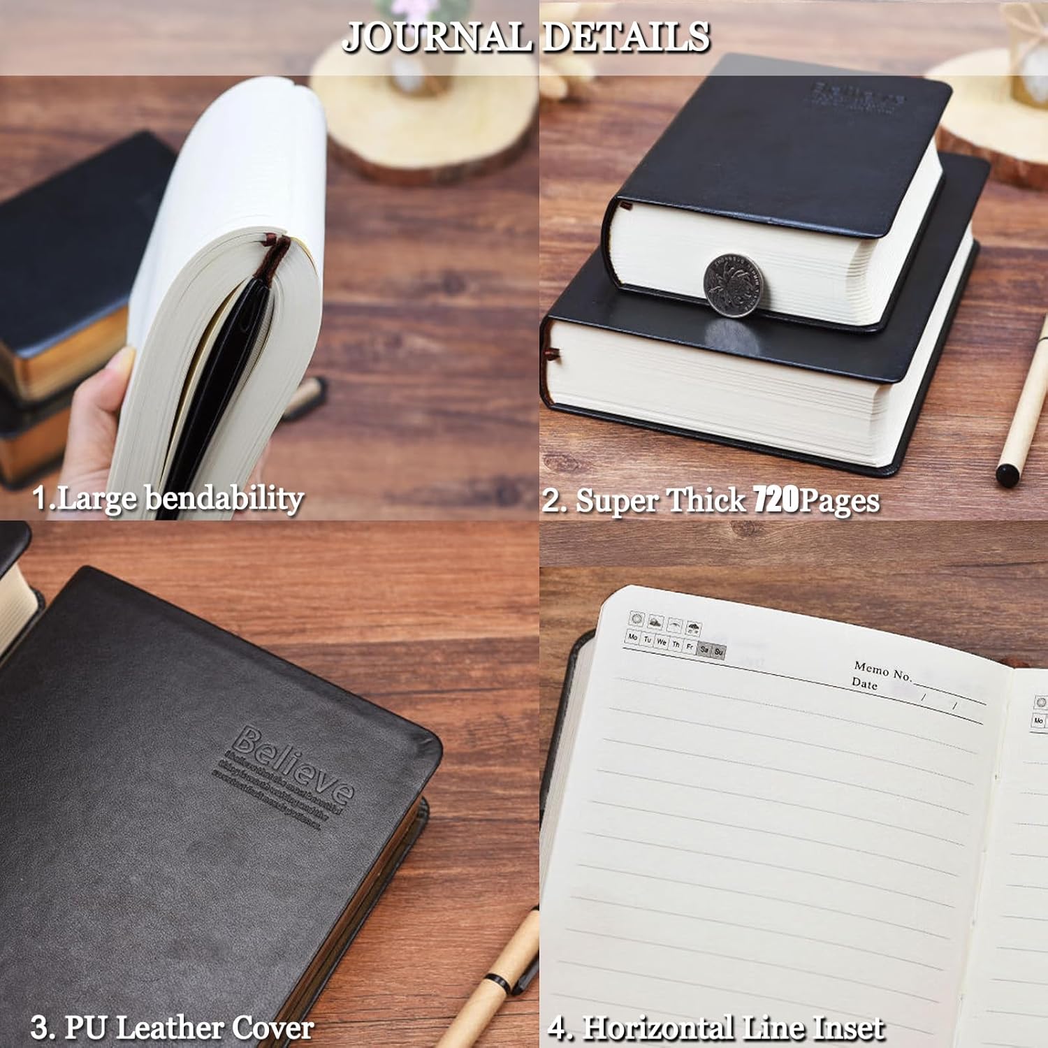 High Quality – Made of high quality PU leather, soft in hands, durable for travel or outdoor. Two-sided 100gsm, 360 sheets, Thick paper, ink bleed resistant, suit for most pens, but the wettest pen inks, acid-free, cream paper is easy for eyes, Give you a great writing experience