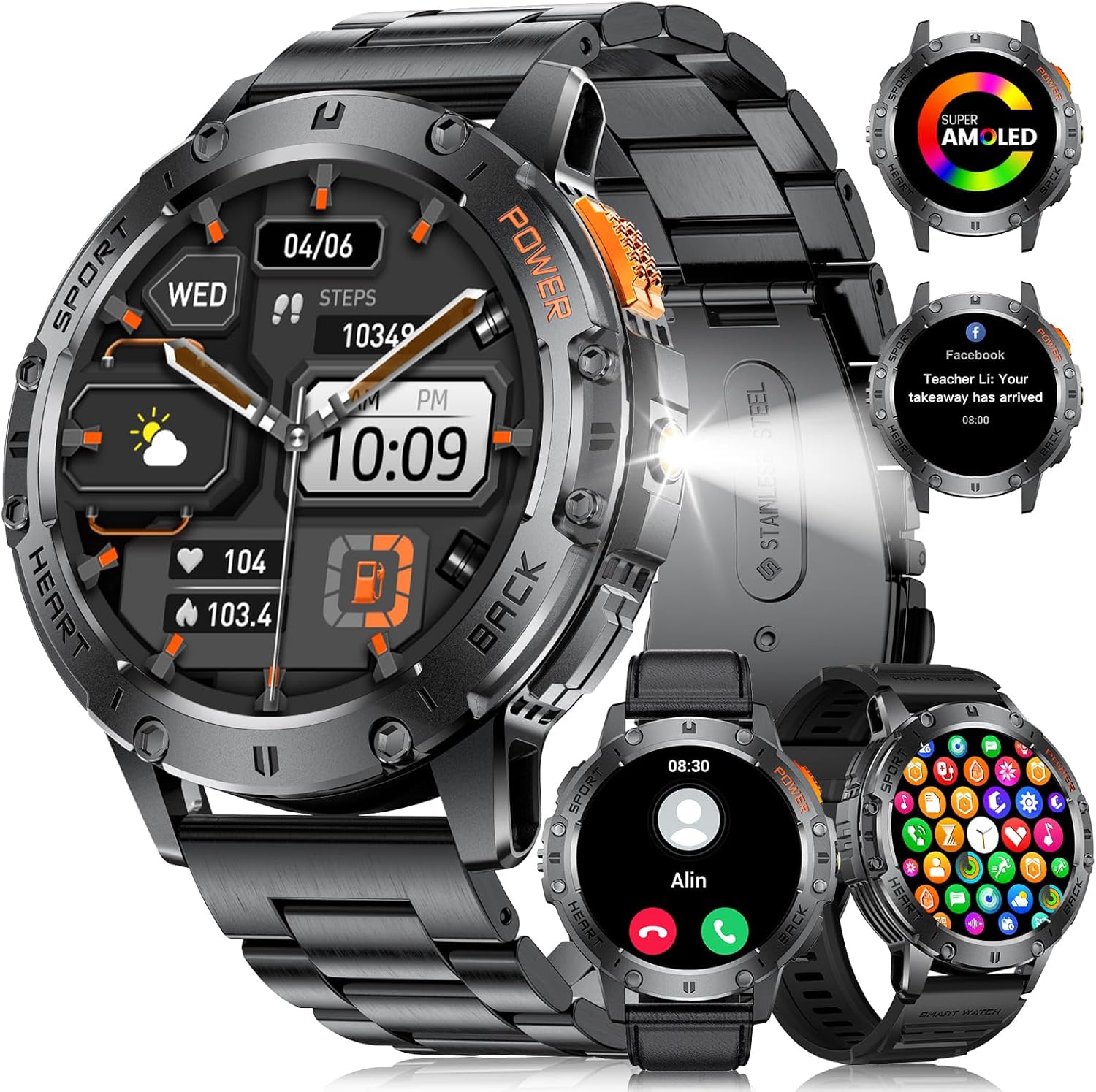 【120+ Sports Modes and Health Tracker】Our smartwatch boast over 120+ sports modes covering activities like walking, running, cycling, tennis, and beyond. Seamlessly monitor key metrics such as steps taken, distance covered, calories expended.The smart watch can track your 24h-heart rate,blood pressure,spO2 and sleep.All data can be synced to app to record physical changes, helping you to fully understand your health status and adjust a sensible lifestyle.