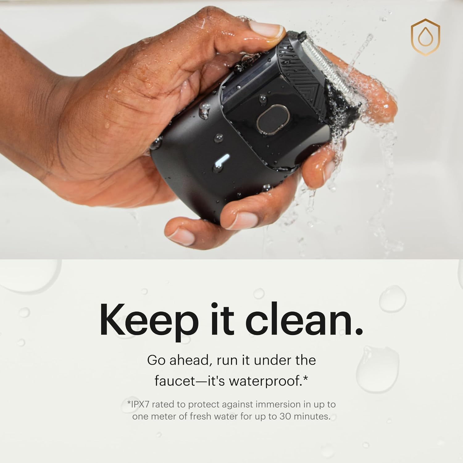 THE HANDYMAN: Our precision compact face shaver is equipped with a dual-action blade head that includes a long-hair leveler and a foil shaver blade.