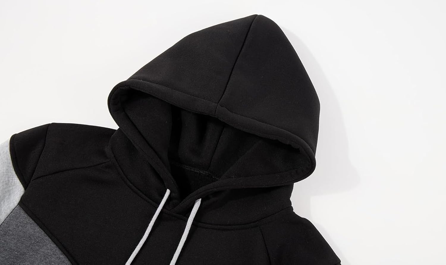This hoodie features a unique patchwork design that adds a touch of contemporary flair to a classic style. The combination of contrasting colors and patterns makes it stand out, while still being versatile enough to pair with any casual outfit.