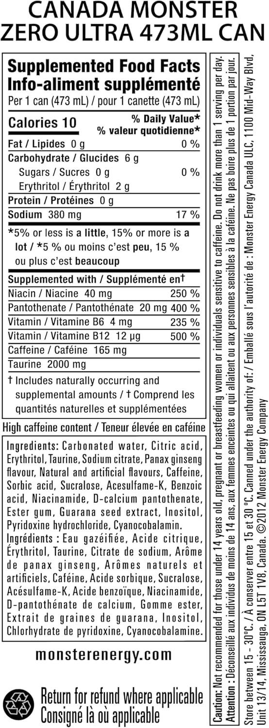 Monster Energy, Zero Ultra, 473mL Cans, Pack of 12