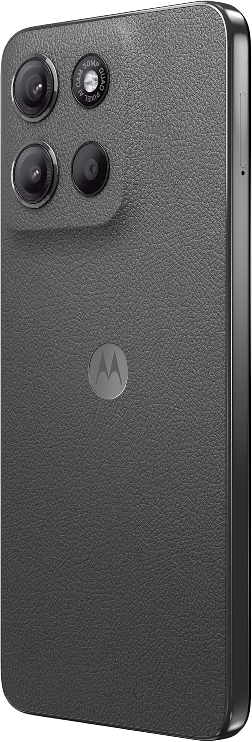 With an impressively crisp and bright 6.72-inch full HD+ screen, your entertainment will come to life even outdoors in sunlight. Enjoy room filling sound with powerful bass amplification stereo speakers and Dolby Atmos. Take incredibly detailed images with the 50MP camera system. Benefit from a larger battery life with a 5200 mAh battery and TurboPower charger. Enjoy the refined look of the premium vegan material in a water-repellent design. Brighten up every day with the Moto G15.