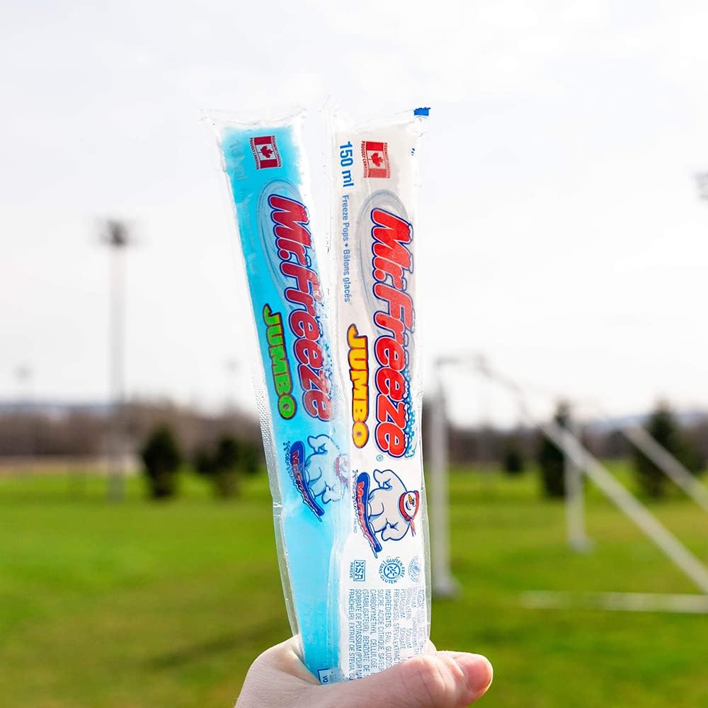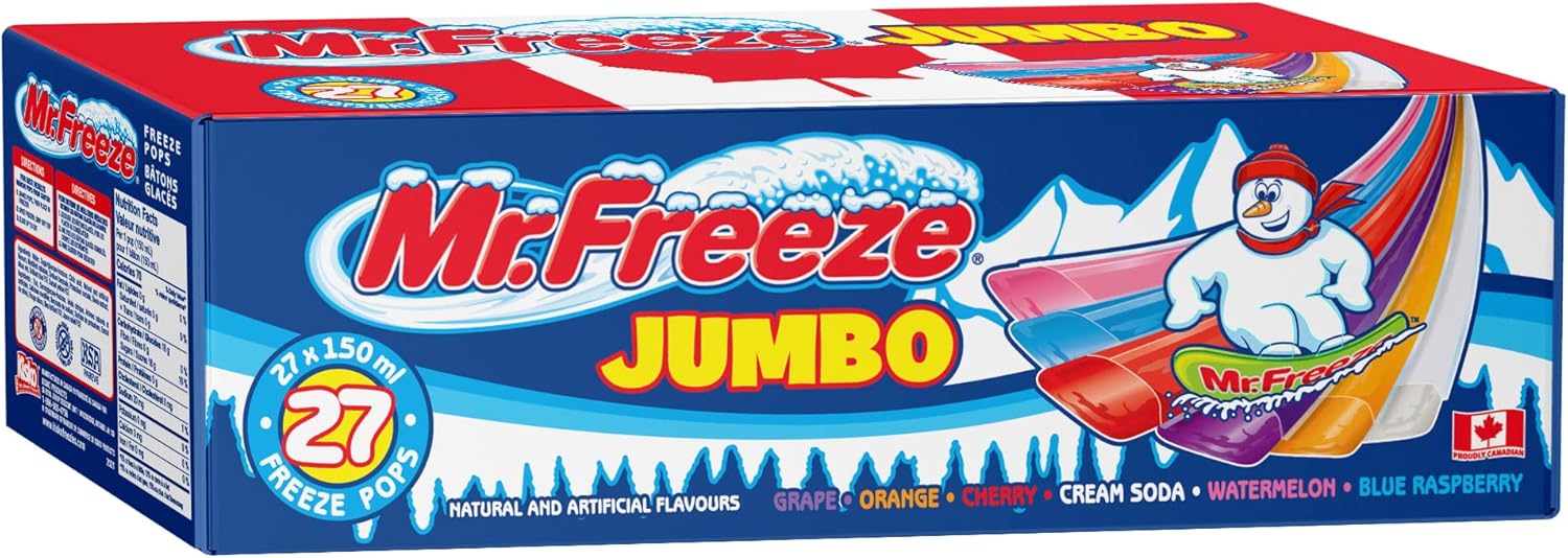 Bring back classic childhood memories and cool off while you make new ones with timeless Mr. Freeze Jumbo Freeze Pops. Available in six delicious flavours, these ice pops are a crowd pleaser at birthday parties and family get-togethers and make a winning addition to your selection of summer snacks. The 150 ml jumbo size makes these freeze pops a refreshing and satisfying frozen treat for both kids and adults alike. EVERY FLAVOUR SPARKS A MEMORY!
