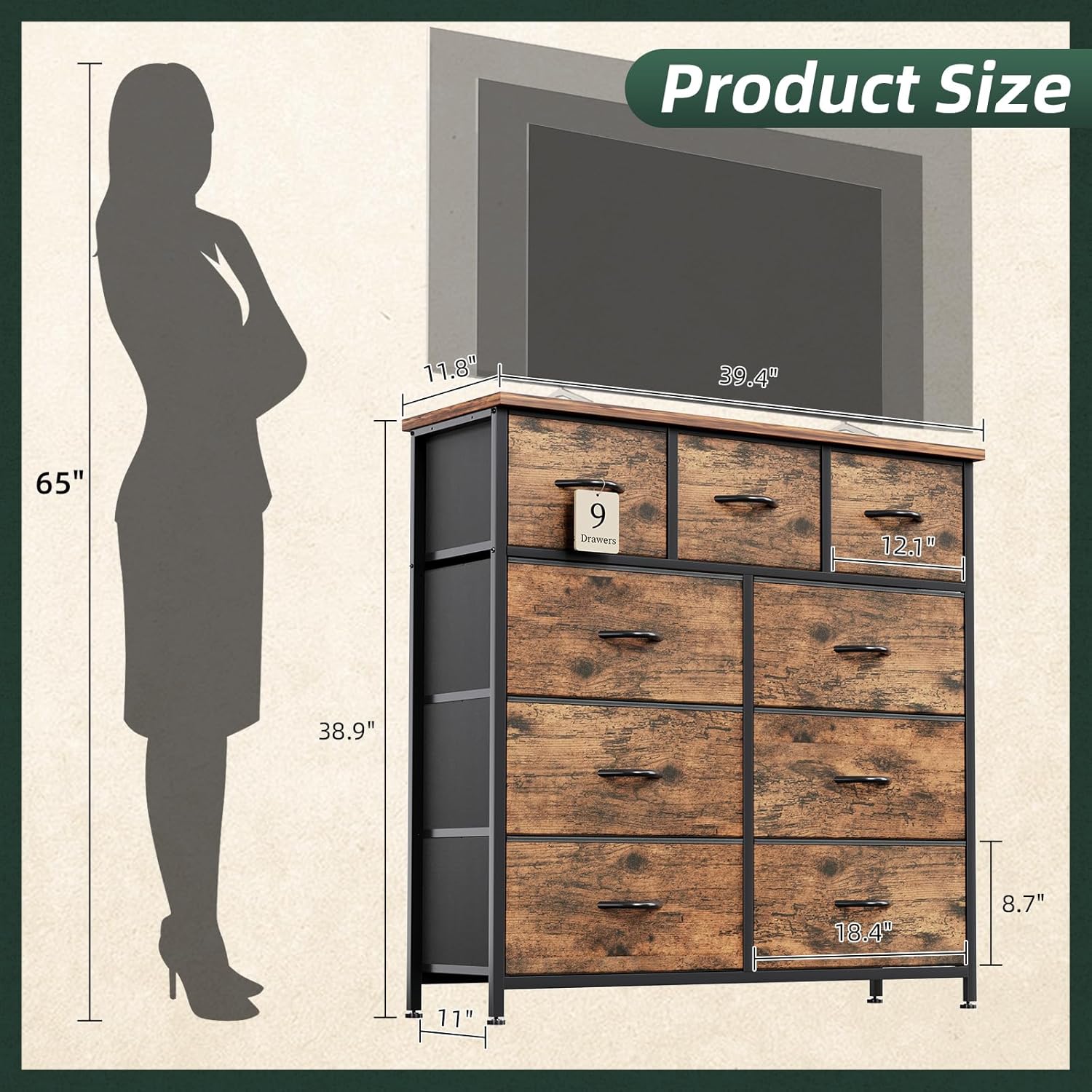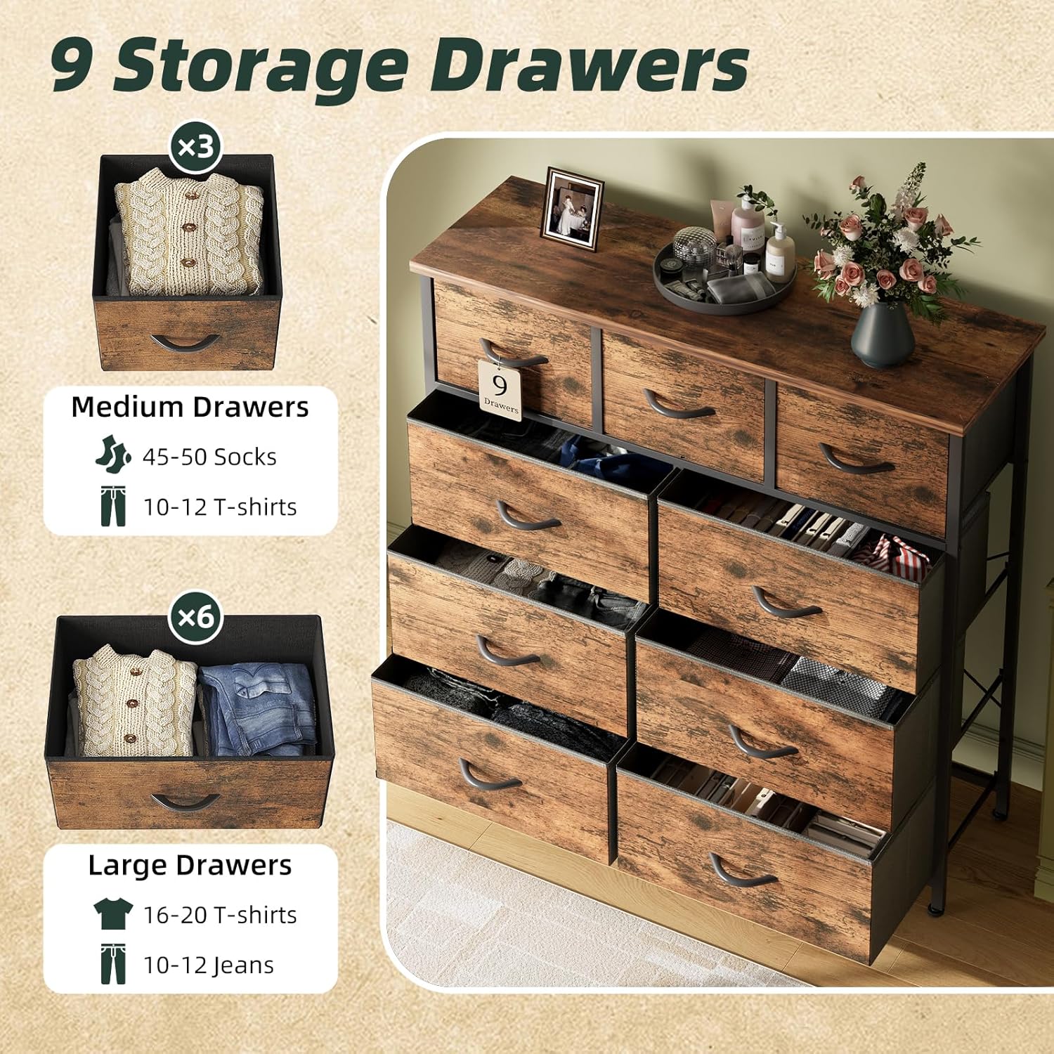 MUTUN Dresser for Bedroom with 9 Drawers, Chest of…