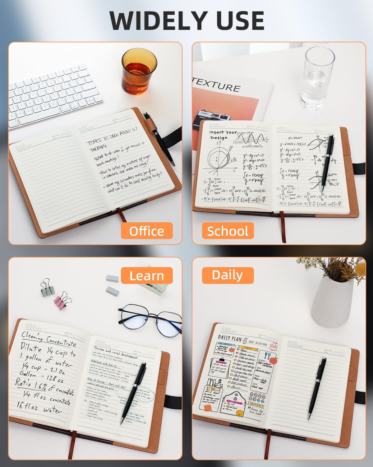 The inner page paper is premium paper, 80g/page, a total of 260 pages! Writing no bleed. The color of the paper is beige, which protects the eyes well.