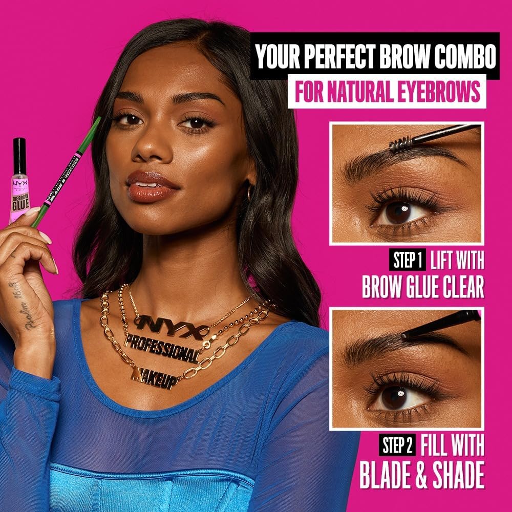 NYX Professional Makeup The Brow Glue is a powerful non sticky brow gel formulated to keep your eyebrows in place for 16 hours. Ideal for creating limitless brow-raising looks that actually stay