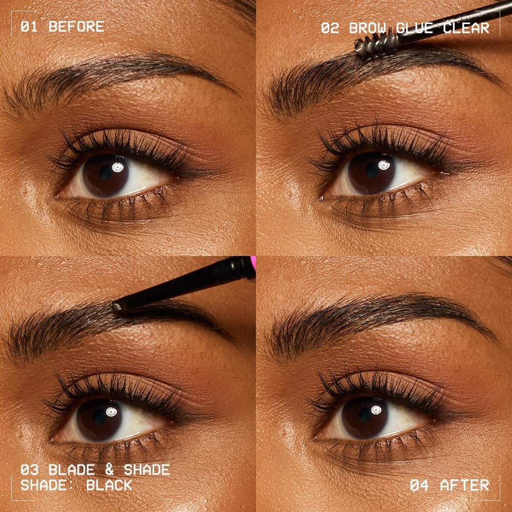 Stick it to your brows! Our 1st instant brow styler with up to 16H extreme hold. This glue-like gel is transparent, flake-resistant, and dries down non-sticky with a natural finish! It’s quick & easy to apply: just brush on and style in place to create limitless brow-raising looks that actually stay. The Brow Glue comes with a precise round bristle brush for easy styling on any brow shape. Pro-tip: For a laminated look, brush brows in an upward motion with The Brow Glue, and let them set. Fill in gaps with your favorite pigmented brow product– like new Lift & Snatch brow tint pen!