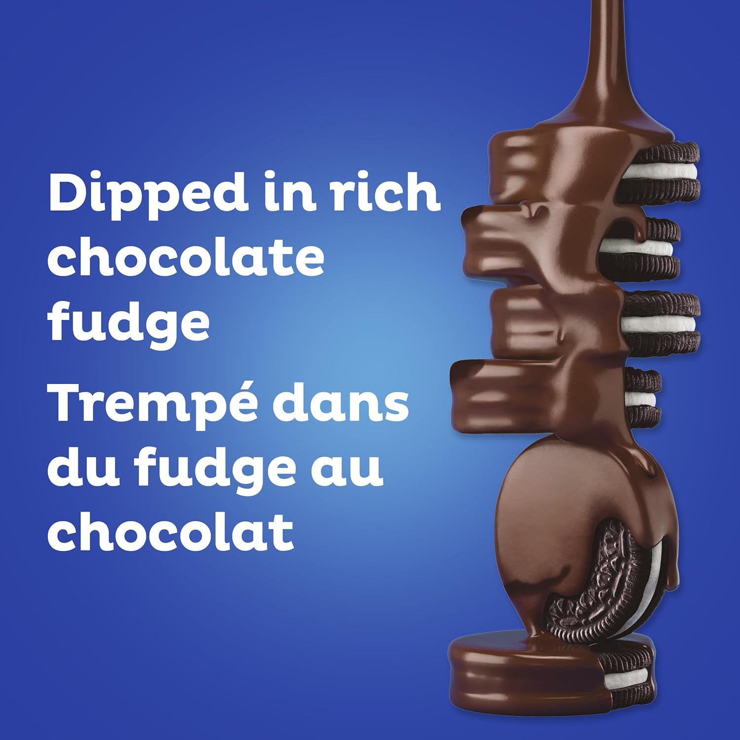 Chocolate wafer cookies with original OREO creme, dipped in rich chocolate fudge