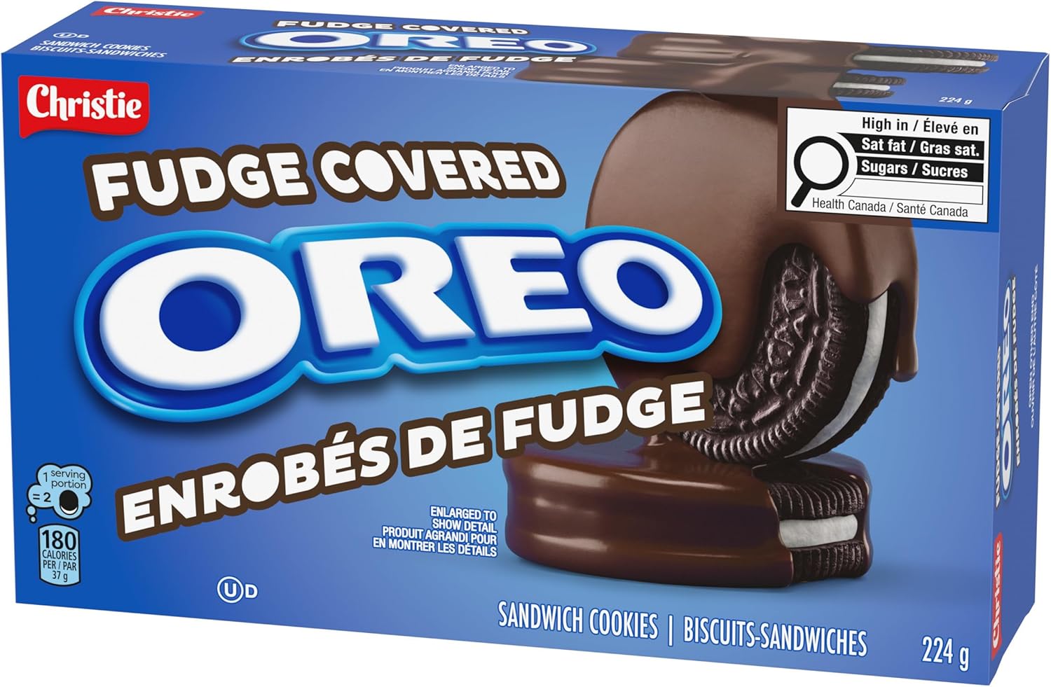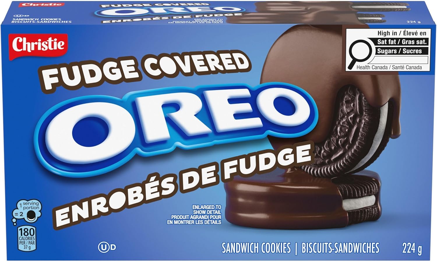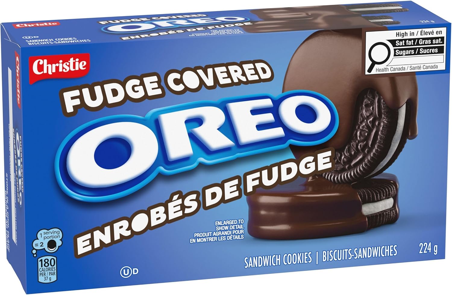 OREO Fudge Covered Chocolate Cookies bring you the classic OREO flavour with even more chocolate goodness in each bite of these sweet snacks. These chocolate sandwich cookies are dipped in fudge for an extra layer of sweetness. Under the extra layer of fudge is the original sandwich cookie and delicious OREO creme filling. Snack on these OREO cookies at the end of a long day or enjoy with milk.
