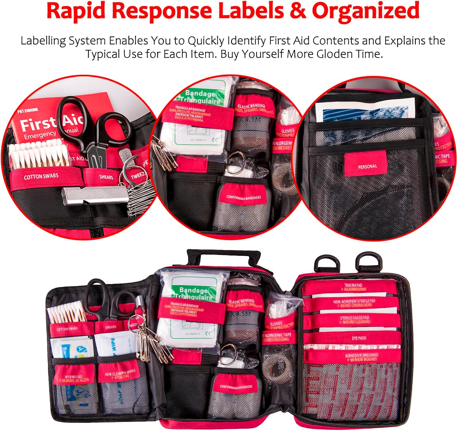 【Comprehensive Array of First Aid Supplies】 Our trauma emergency kit bag encompasses a comprehensive selection of top-quality products. Refer to the provided product images and descriptions for a detailed list of contents. Ideal for use at home, workplaces, outdoors, travel, boating, camping, hiking, and any emergency scenario.