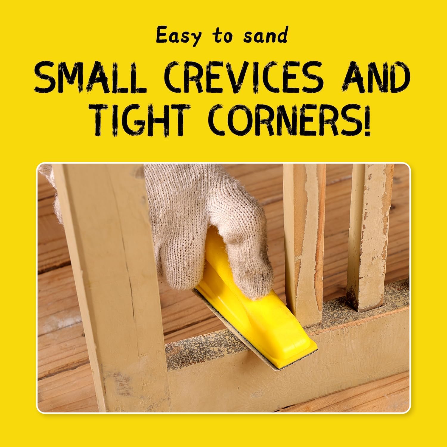 Comfortable To Hold: POLIWELL detail mini sander sanding fits snugly under your index finger, tough polyurethane foam (PU) made, soft, light weight and good feels on hand. This little sander can flexibly get into tight spaces and do larger areas quickly.