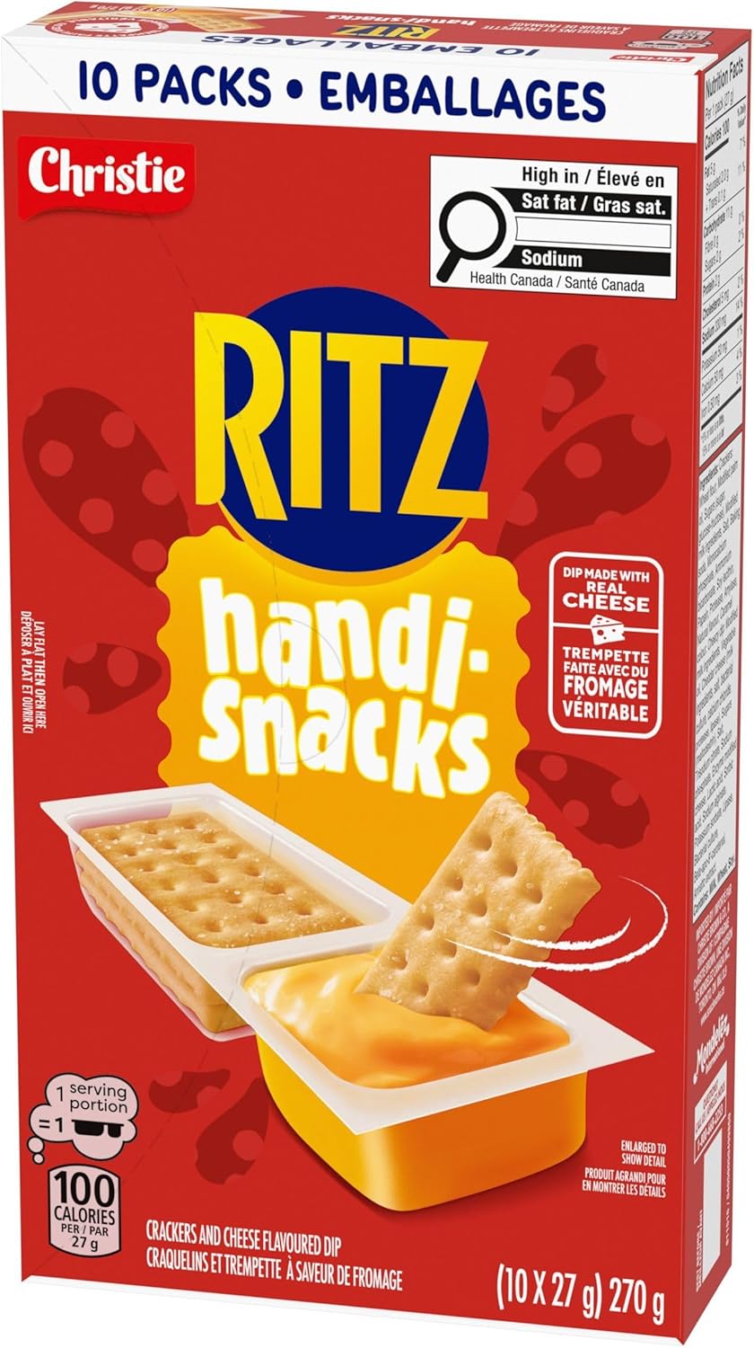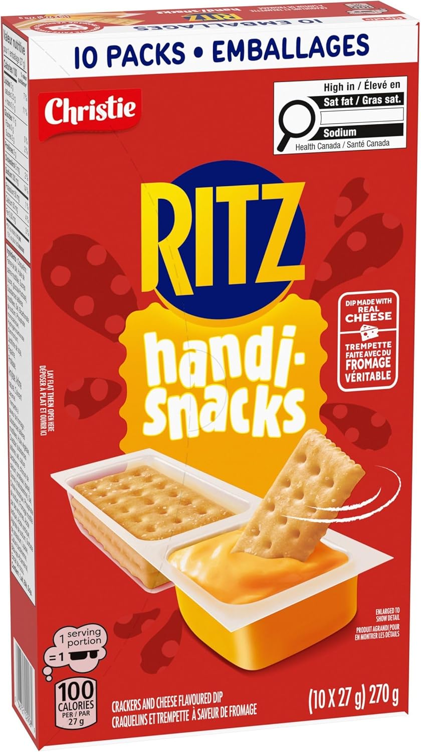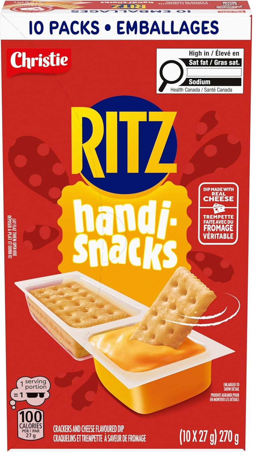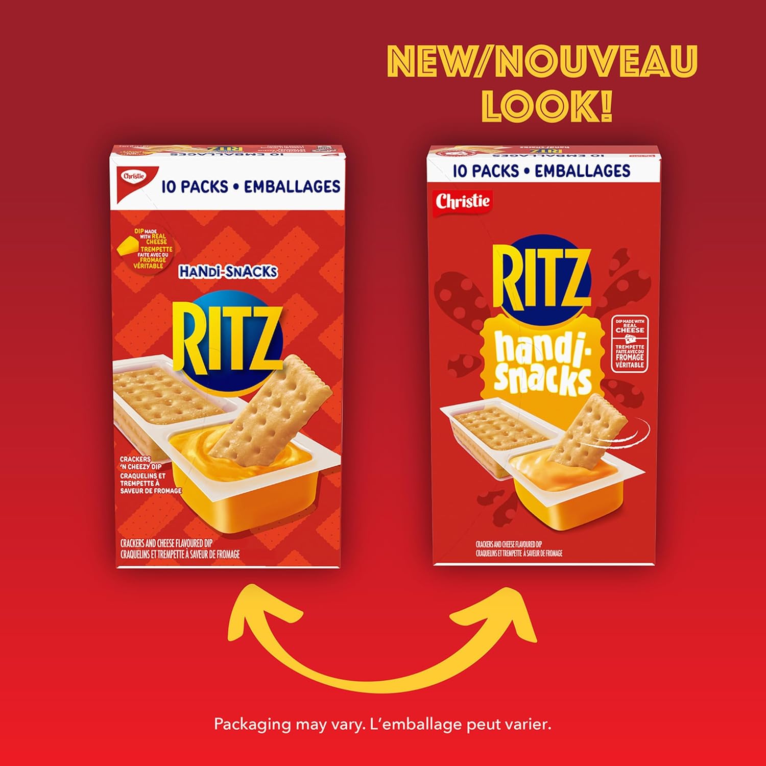 One box with 10 packs of Handi-Snacks RITZ Crackers and Cheese Dip Snack Packs