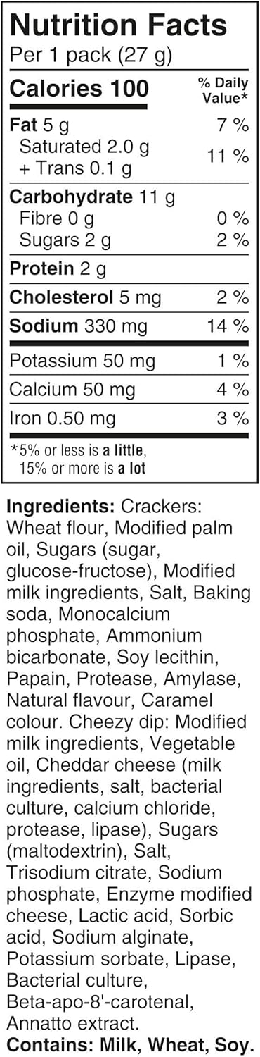 Handi-Snacks RITZ Crackers and Cheese Dip Snack Packs pair crunchy RITZ crackers with creamy cheese to make the perfect savory snack. These delicious snack packs take classic RITZ crackers and the taste of smooth cheese and transform it into a fun, dippable treat. Toss one of these cracker packs into your lunchbox as a tasty snack, or stash them in your travel pack as a fun road trip treat. Each of these individually wrapped cheese and crackers snack packs features handy compartments for the salted crackers and the cheesy dip to keep everything in place, whether you’re snacking at home, work, school or on the road.