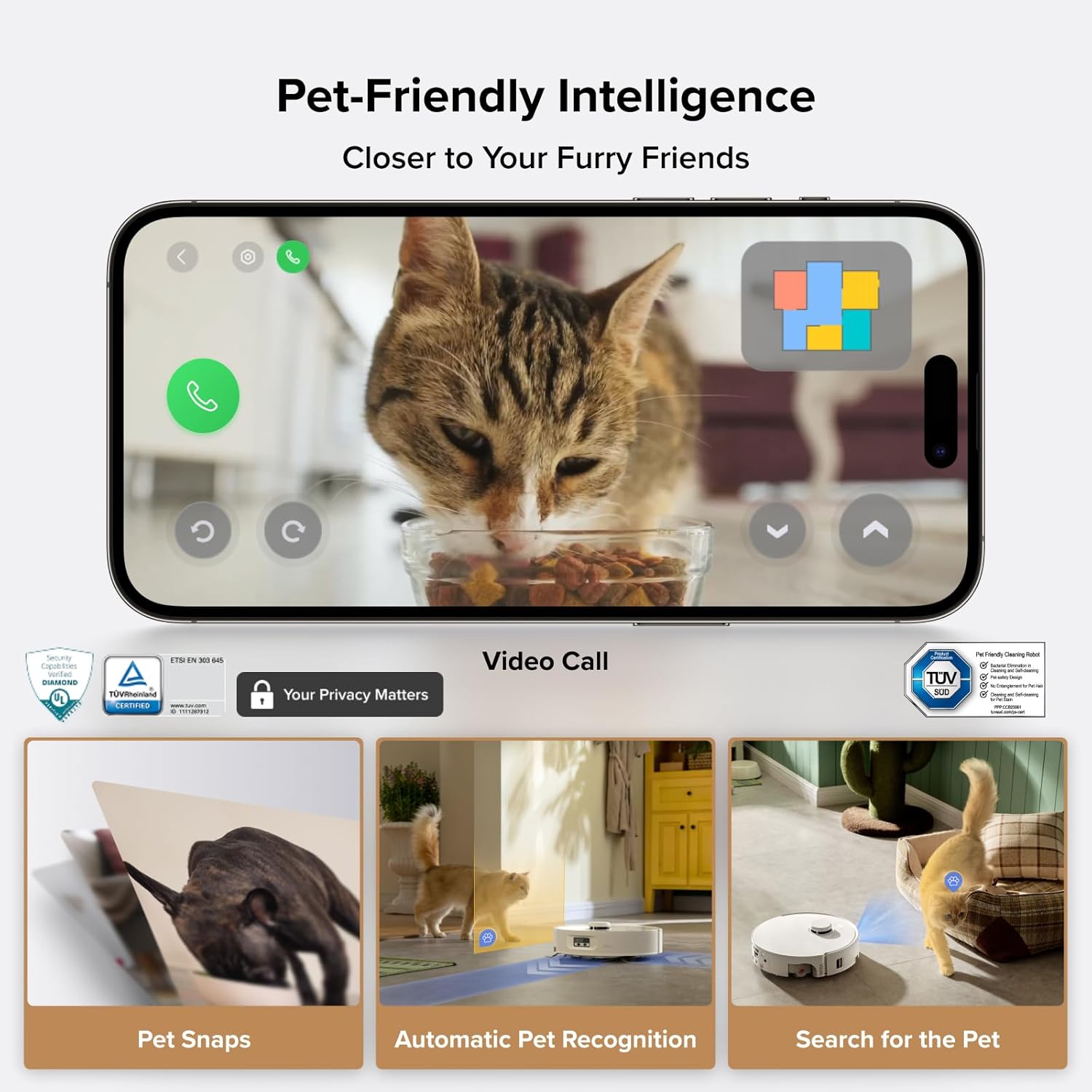 Smart Carpet Strategy: With one tap, select the ideal carpet mode. The robot automatically increases suction and lifts the mop up to 15 mm to protect carpets while cleaning. The innovative Roller Shield deploys at the same time, forming a barrier that helps separate dry and wet zones for a more efficient routine