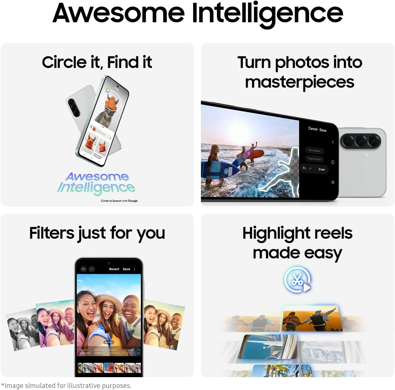 Unbeatable value with a slim, design and all the essential features you need await on Galaxy A56 5G. With more storage, you can keep your favourite photos, apps, and memories without worrying about running out of space. Capture stunning selfies with the enhanced front camera and easily edit and enhance them with AI Photo Edit tools. The large 6.7″ display makes gaming, scrolling, and movie nights more enjoyable than ever. Whether you’re staying connected, capturing moments, or browsing, Galaxy A56 5G gives you premium performance at an affordable price. It’s the smart choice you’ve been waiting for. Awesome price. Amazing value.