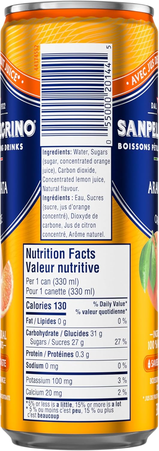 SAN PELLEGRINO Naturali is the carefully crafted mix of real Italian fruit juices, 100% natural ingredients and sparkling bubbles that turns any time into a delightful moment. SAN PELLEGRINO Naturali Aranciata bursts with intense aroma of high-quality oranges, ripened under the Mediterranean sun. The 330 mL can format is ideal for on-the-go refreshment. SAN PELLEGRINO is strongly committed to safeguarding the Earth’s precious gifts and is dedicated to protecting the source of taste by looking after the territories, managing resources sustainably and respecting the environment by becoming 100% carbon neutral by 2022. Today, SAN PELLEGRINO Naturali 330 mL cans are 100% recyclable and are made with 25% recycled aluminum.