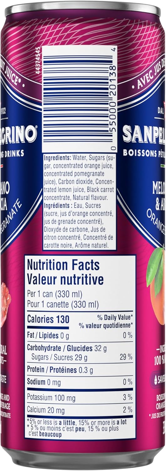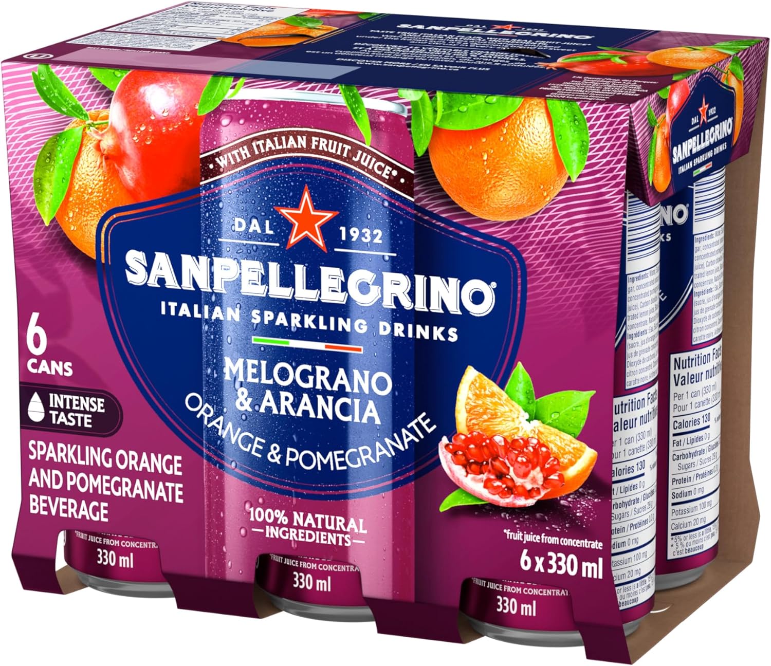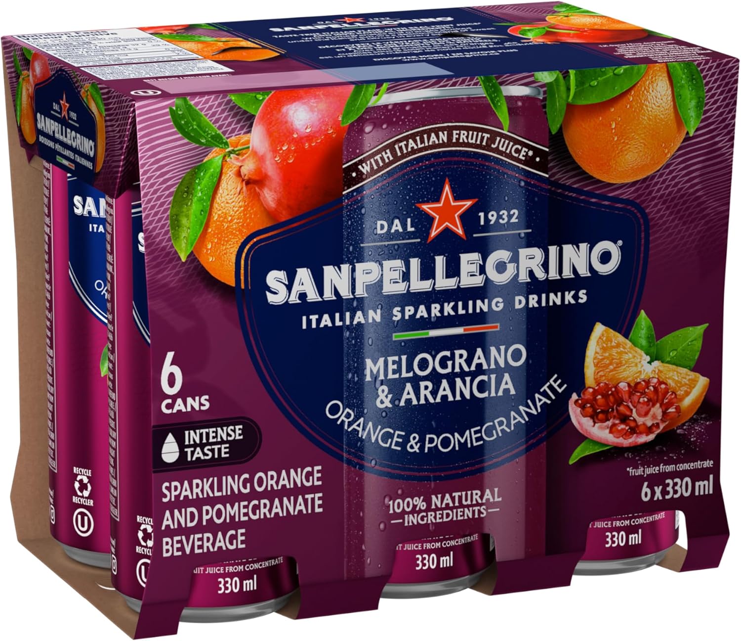 Juicy oranges meet lush pomegranate in all-natural Sanpellegrino Melograno & Arancia, an irresistible blend crafted from 100% natural ingredients that captures the joyful effervescence of an Italian summer. A glistening ruby red drink with orange reflections, every sip of this authentic premium drink from Italy fills you with the vibrant aroma of pomegranate that is followed by the sweet citrus notes of orange, lingering just like the unforgettable holiday memories of a fiery sunset. Delicious Sanpellegrino Melograno & Arancia is made from the juices of sun-ripened oranges and pomegranate from the Mediterranean, which give this unique drink its smooth taste. It is freshly invigorating thanks the perfect touch of fine bubbles, with a pleasant tartness that is balanced with just the right amount of sweetness.