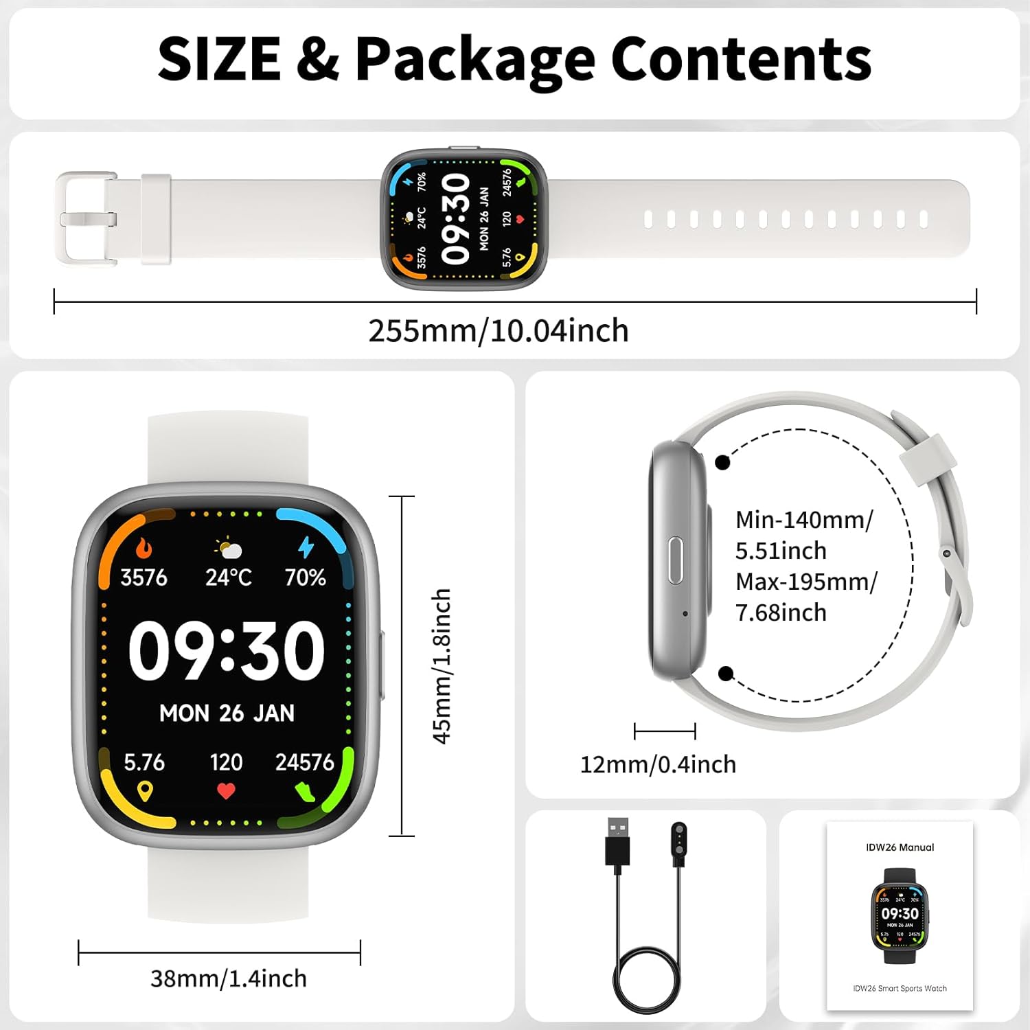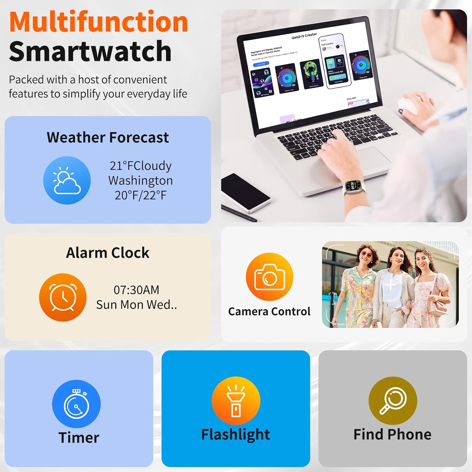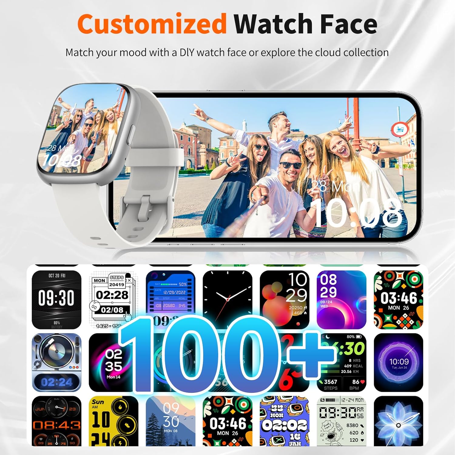 【1.83″ HD Display & Customizable Watch Faces】 Enjoy a bright, ultra-clear 1.83-inch HD full-touch display that brings vivid color and smooth interaction. Choose from over 100 watch faces or upload your own photo to match your outfit or mood. Also includes weather updates, alarms, and step tracking to make your day more convenient.