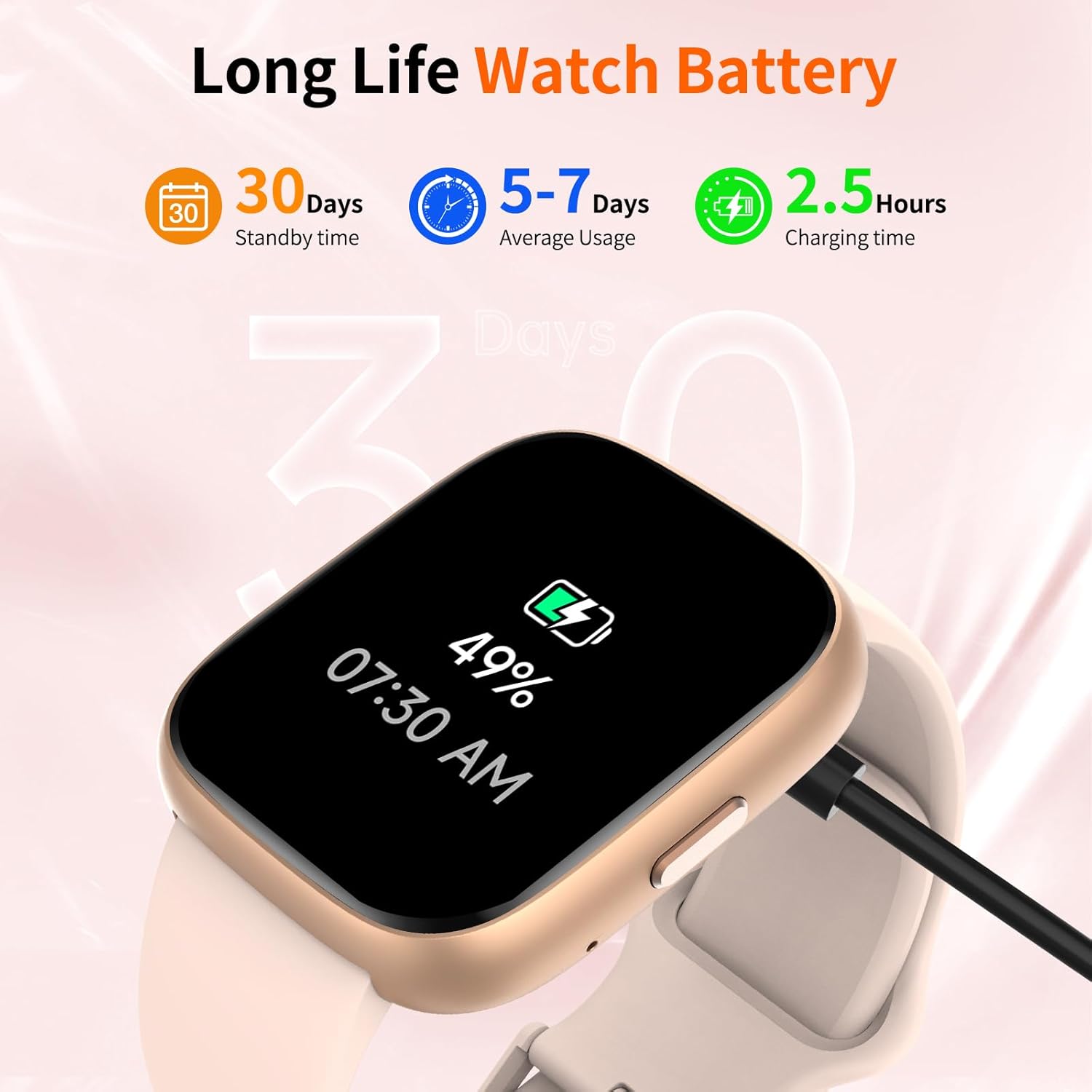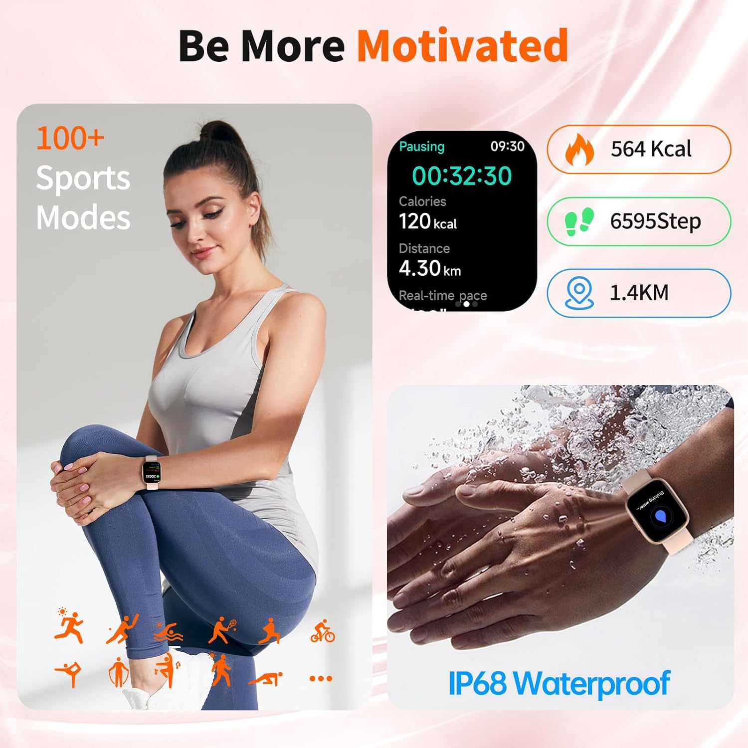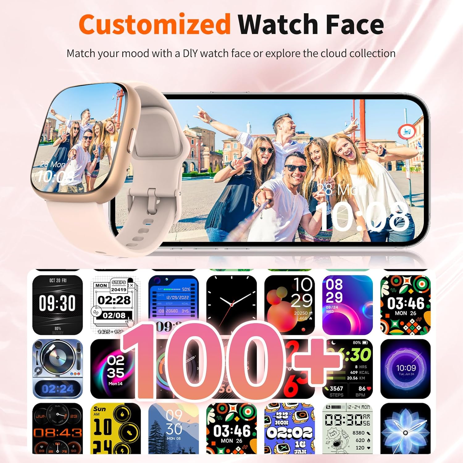 【100+ Sports Modes & IP68 Waterproof】 Whether it’s running, yoga, cycling, or swimming, choose from 100+ sport modes to monitor your workouts with real-time data. With an IP68 waterproof rating, the watch easily withstands sweat, rain, and splashes—ready for every fitness challenge.