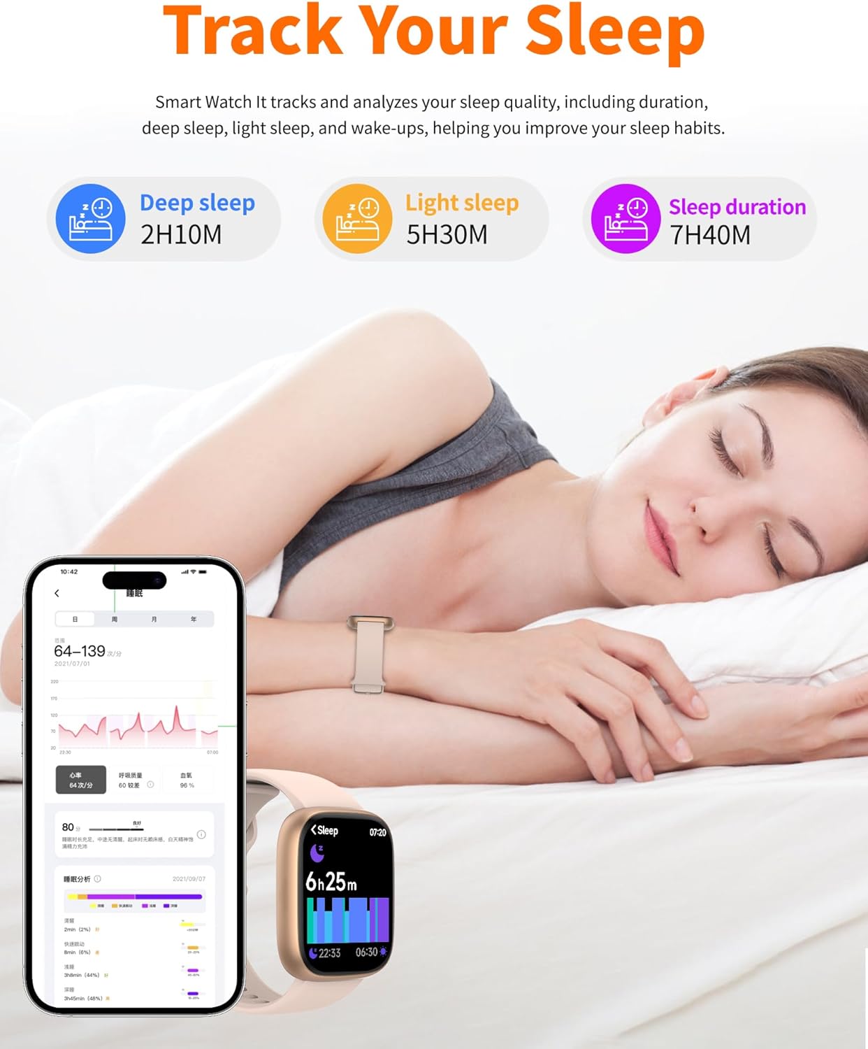 100 Sports Modes & Multifunctional Features: This smartwatch offers 100+ sports modes, including running, basketball, cycling, yoga, jump rope, and more, making it the perfect fitness companion. It also features call notifications, weather forecasts, pedometer, music playback, customizable watch faces, auto-brightness, music controls, IP68 waterproof rating, and multilingual support. This multifunctional smartwatch enhances both daily life and fitness, making them more convenient and enjoyable.